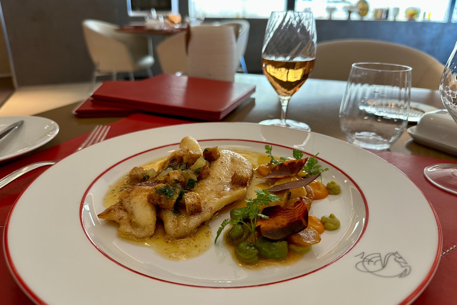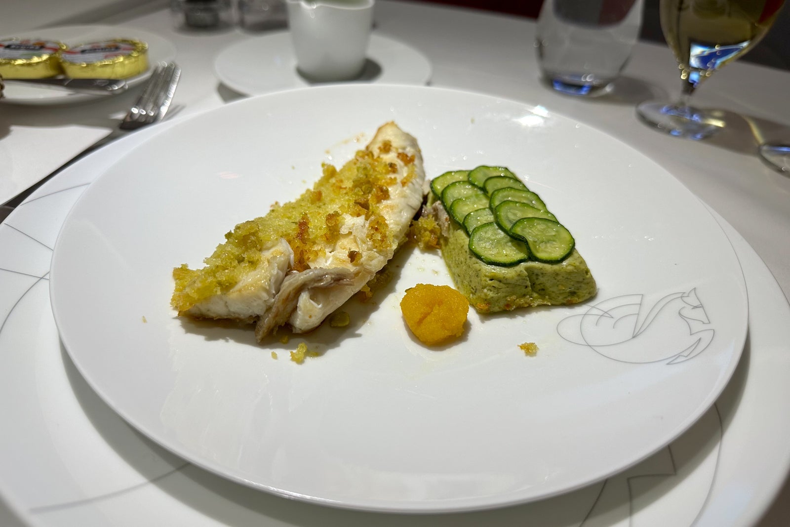 I thoroughly enjoyed my sea bream entree, which was presented with a cloche — an elegant touch that definitely elevated the meal service.