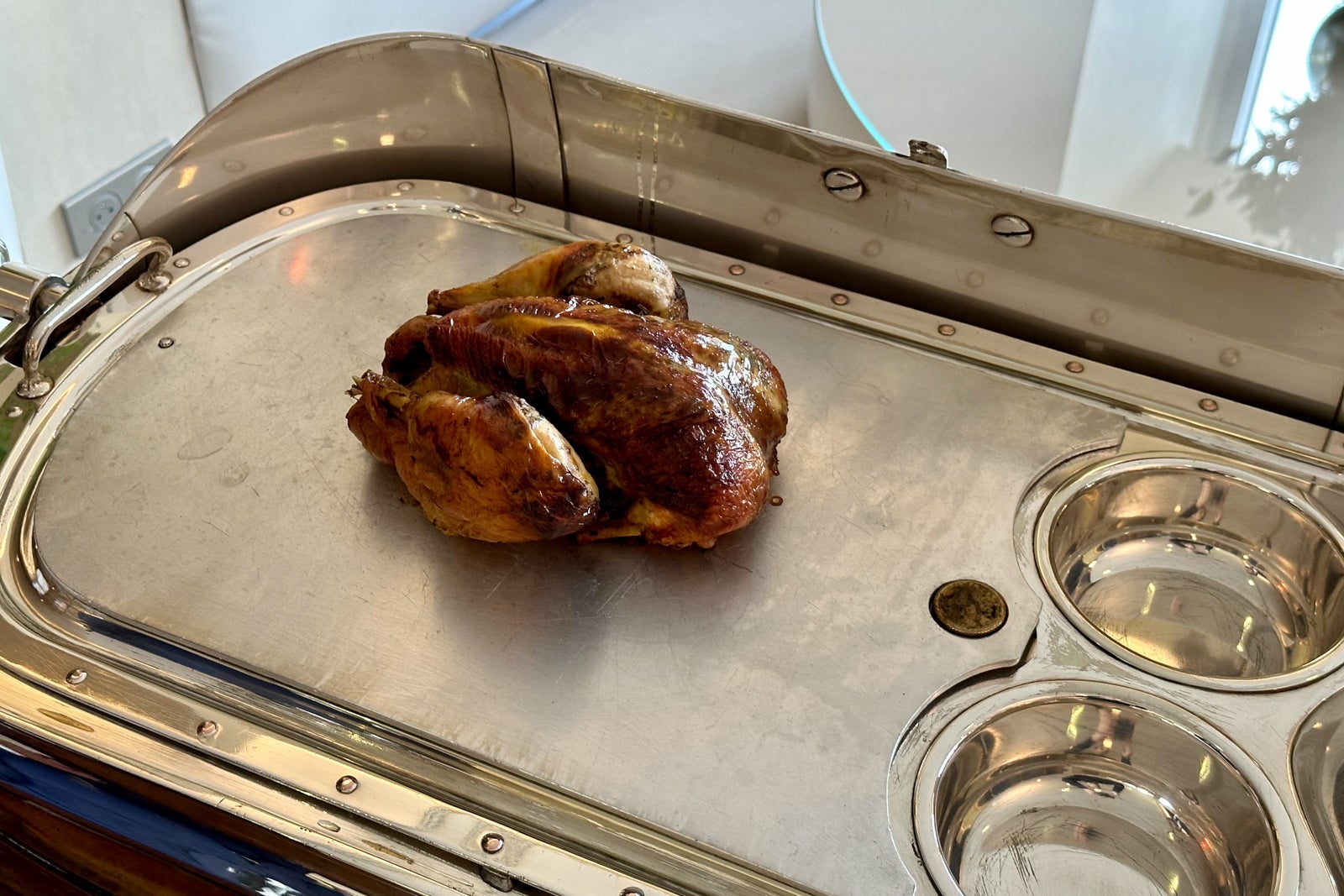 I asked the waiter for his recommendations, and he rolled over a cart with a freshly grilled whole chicken, offering to prepare a piece or two for me.