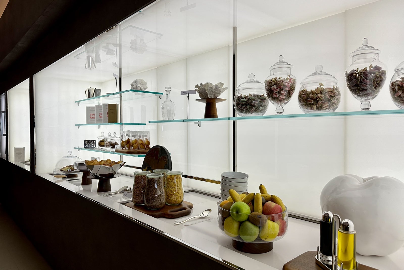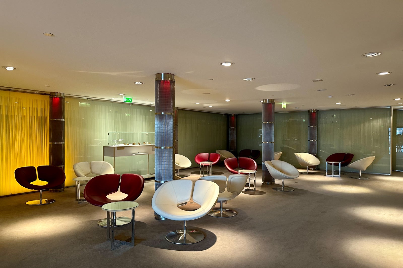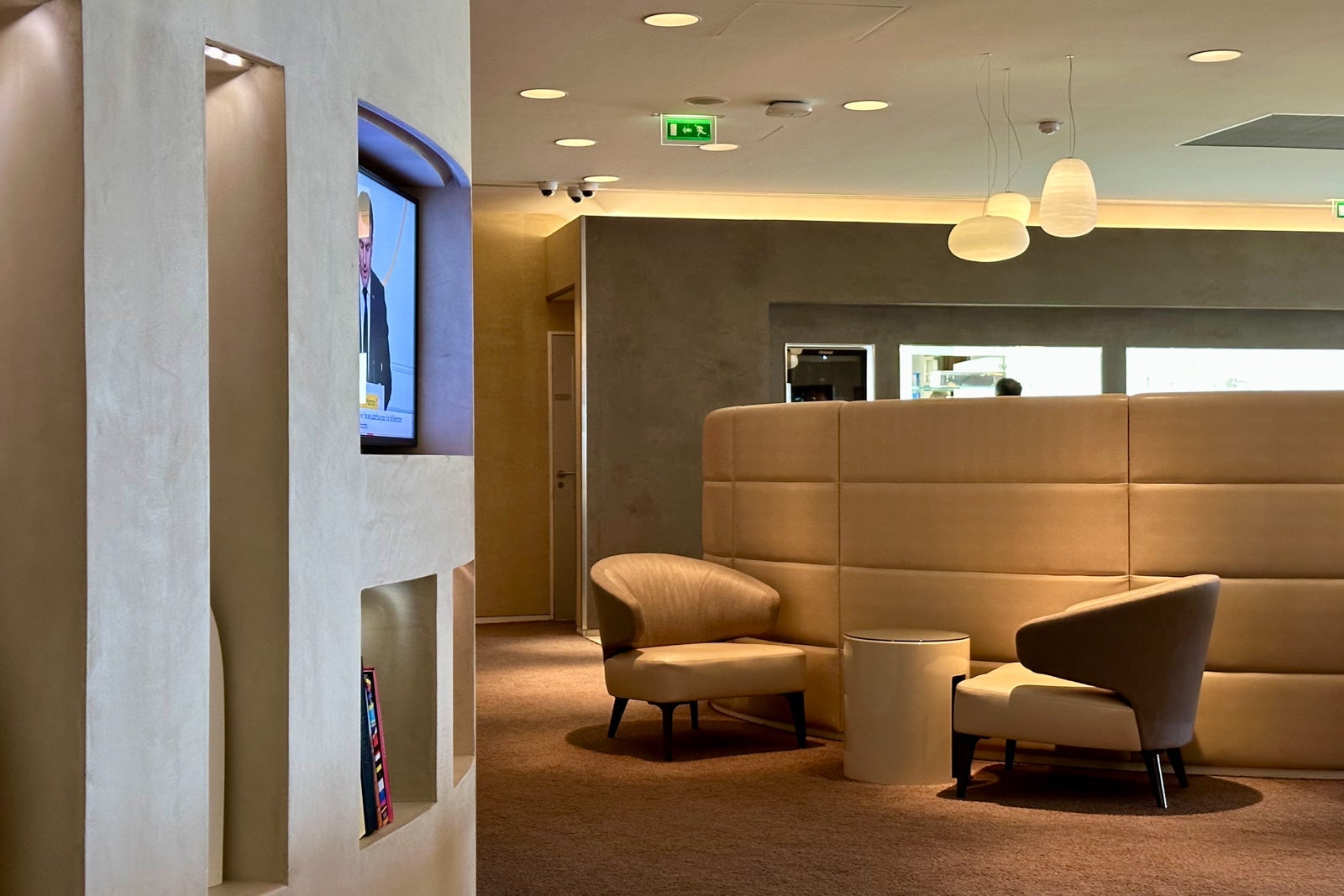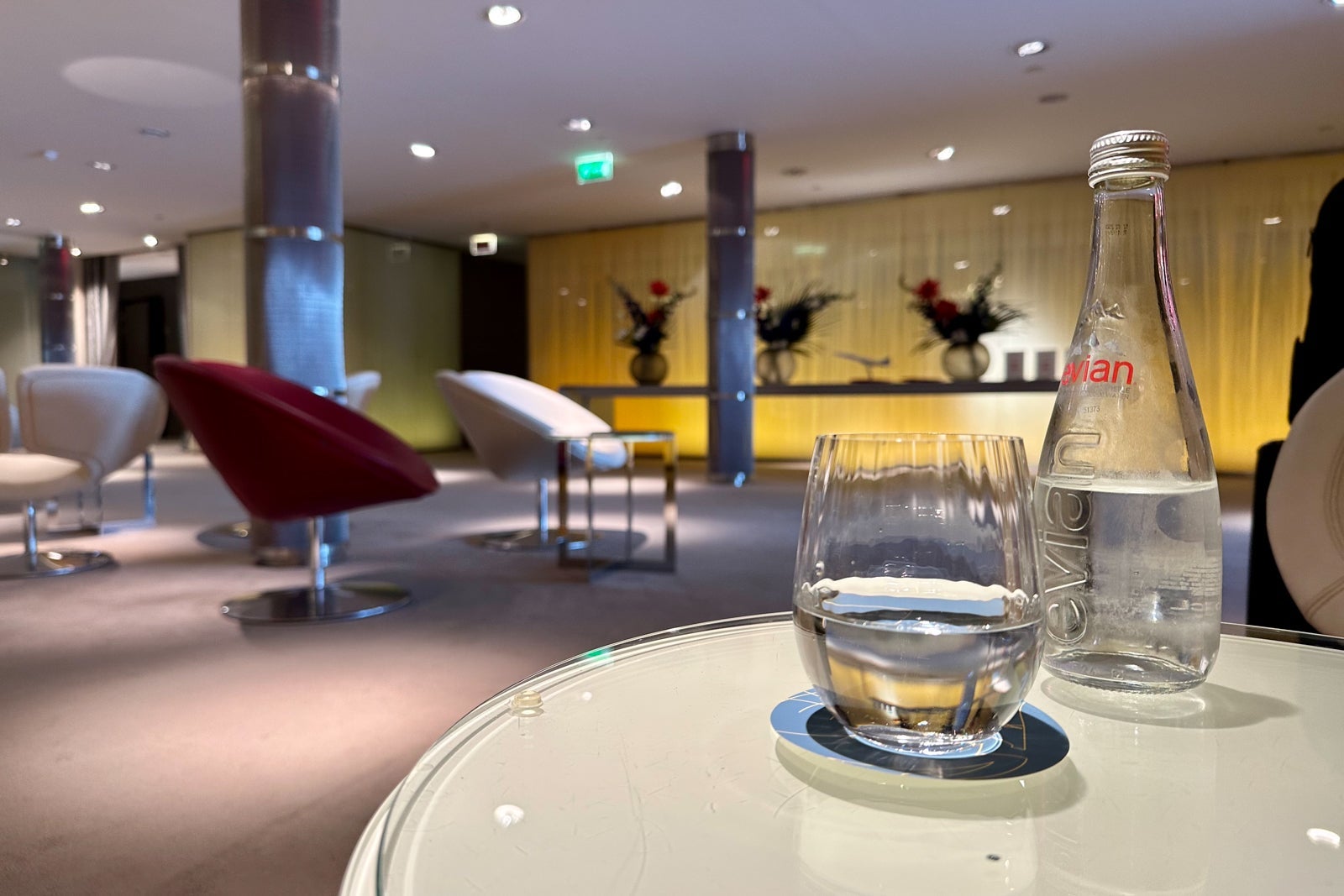 Upon arriving at the entrance to this lounge, a friendly escort ushered me to a seat, offered me a glass of still or sparkling water and collected my passport.