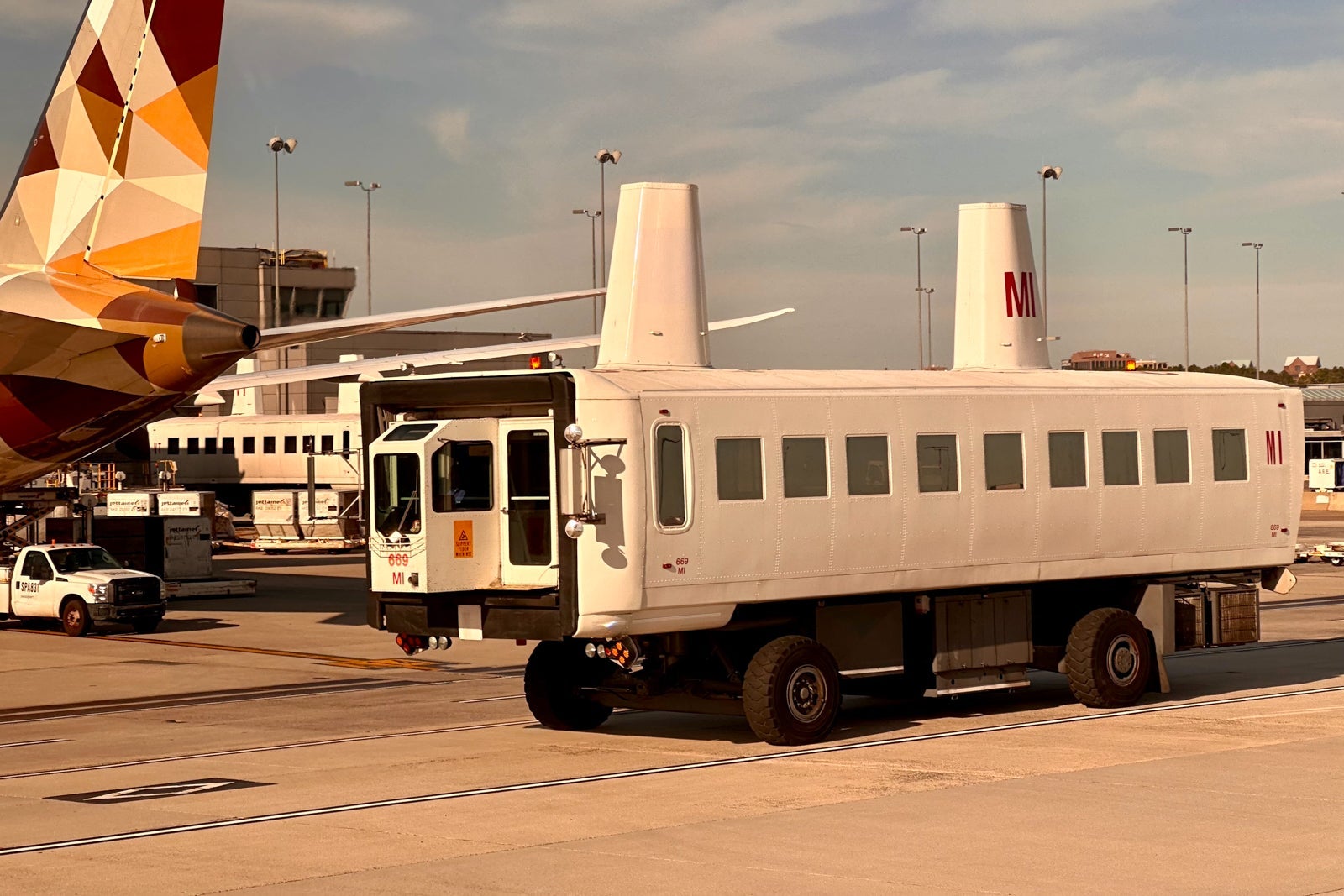 Even though there were other first-class passengers on my flight, each flyer gets their own personalized transfer to the gate. Our drive took about 10 minutes. We needed to wait for some moving aircraft, but once I arrived at the gate, I was escorted up a flight of stairs directly to a roped-off jet bridge reserved for first-class passengers.