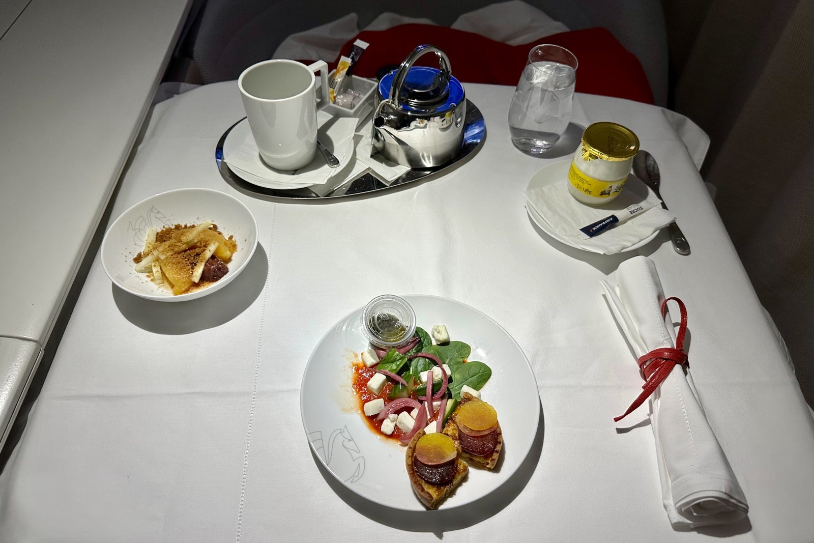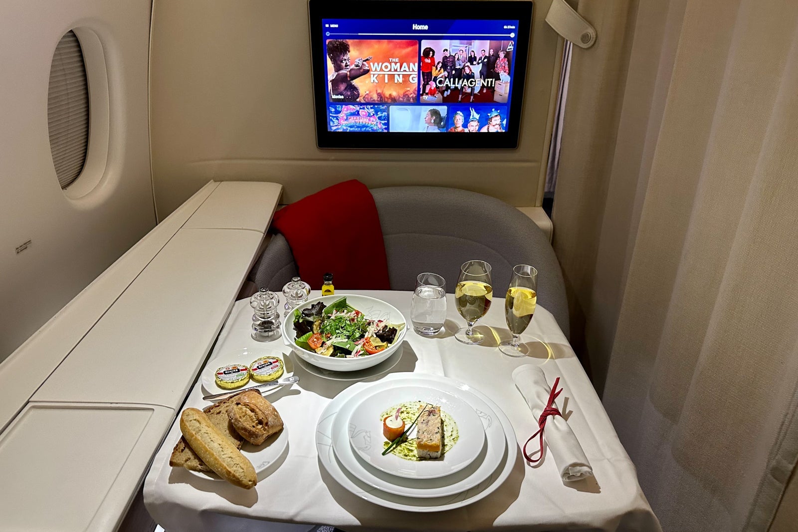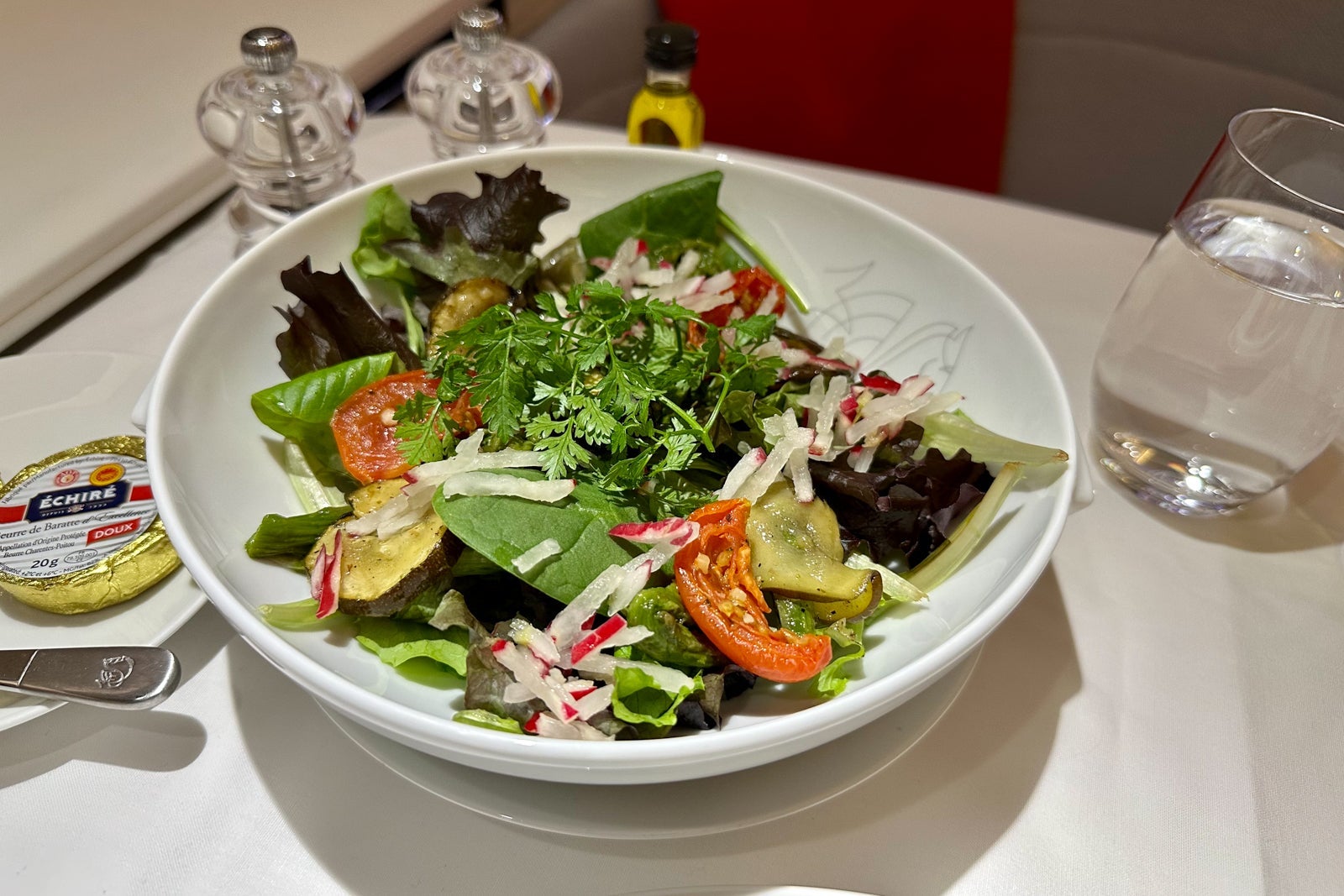 After such a delicious meal in the lounge, I came in with lofty expectations for the onboard culinary experience, yet Air France managed to raise the bar once again — at least for the first meal service.