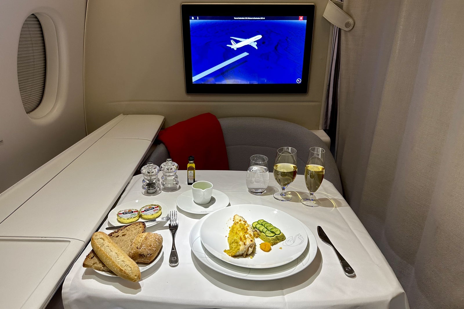 I then inquired about the first-class buy-up, and I was quoted 1,639 euros, or roughly $1,780. I still had more than five hours until the flight, and I would have plenty of time to enjoy the famed ground experience. Plus, it'd be a daytime flight with a full lunch service, so I figured it was now or never.