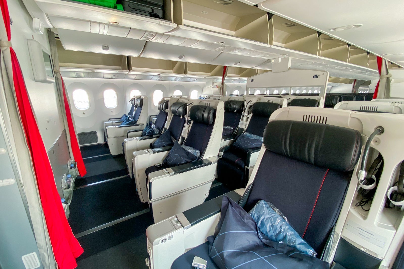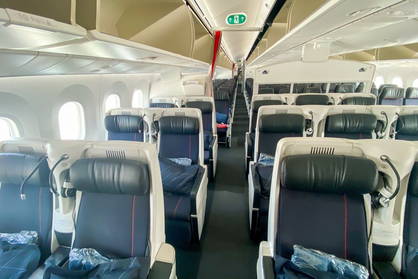 As mentioned in the editor's note at the start of this story, I accepted a generous onboard upgrade I was offered during boarding. After taking some photos, I went from coach to the premium economy cabin, which contained 21 seats in a 2-3-2 configuration in three rows.