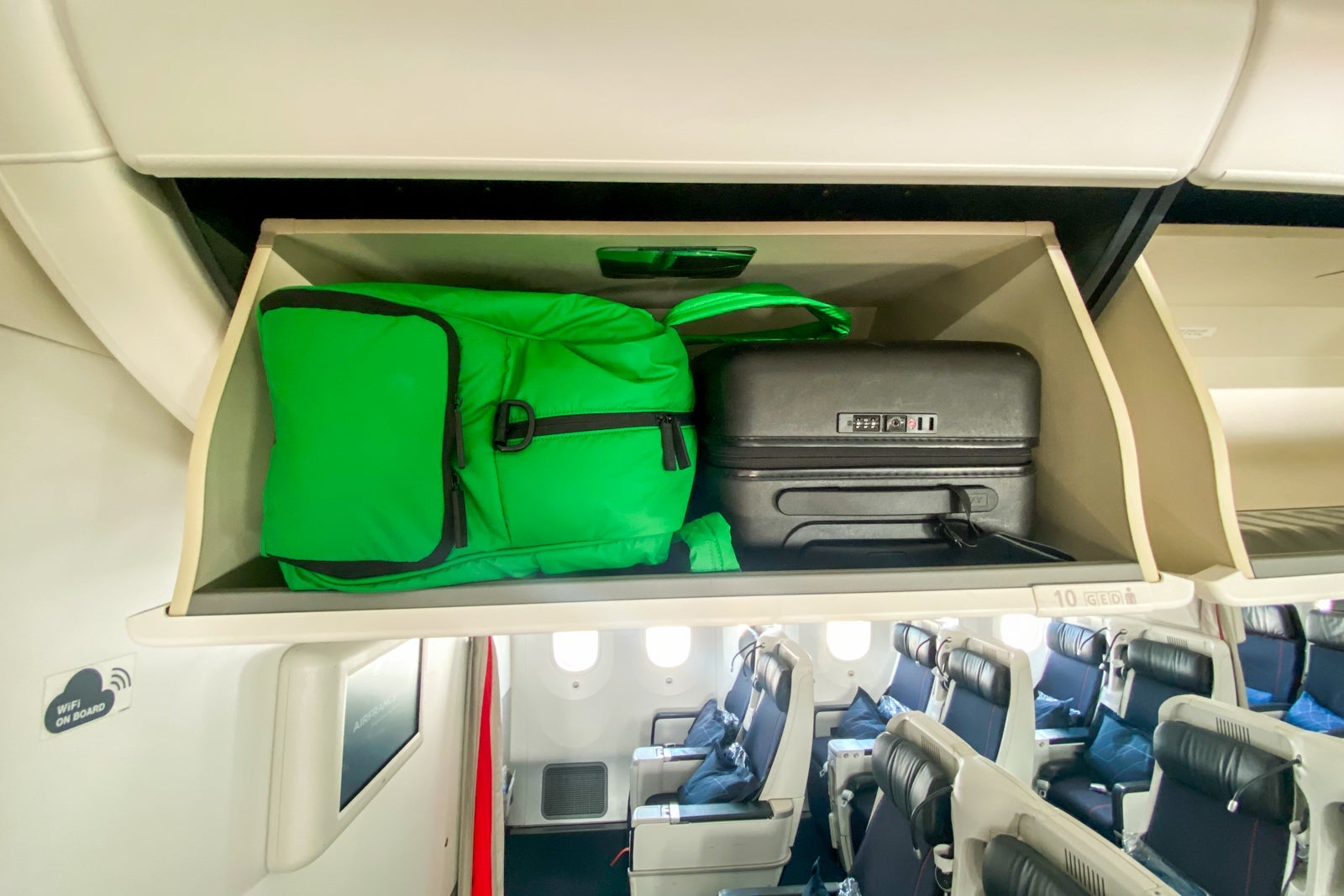Because there were overhead bins on the sides and down the middle of the cabin, there was plenty of room for everyone's luggage, including both of my carry-on bags. It was my first time traveling with a larger carry-on duffle, and it still fit without issue.