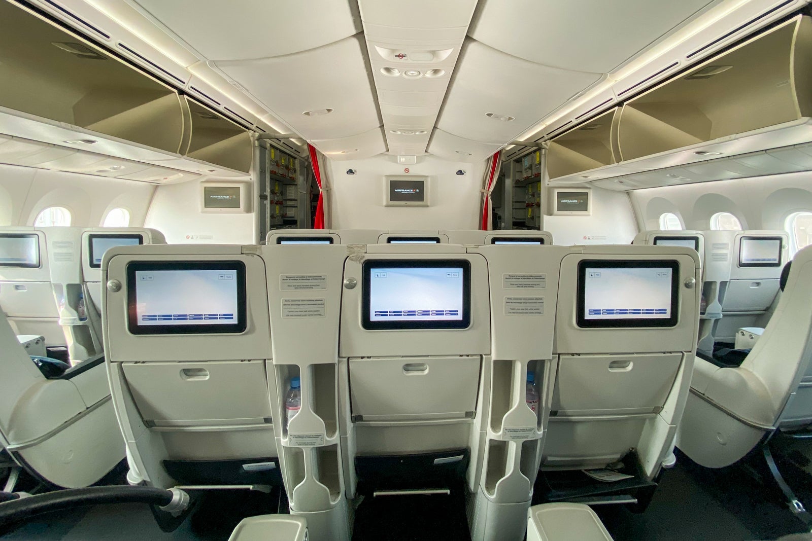 When flying Air France's Boeing 787-9s, you can expect the below measurements in terms of layout, seat pitch, seat recline, seat width and screen size in economy, premium economy and business class: