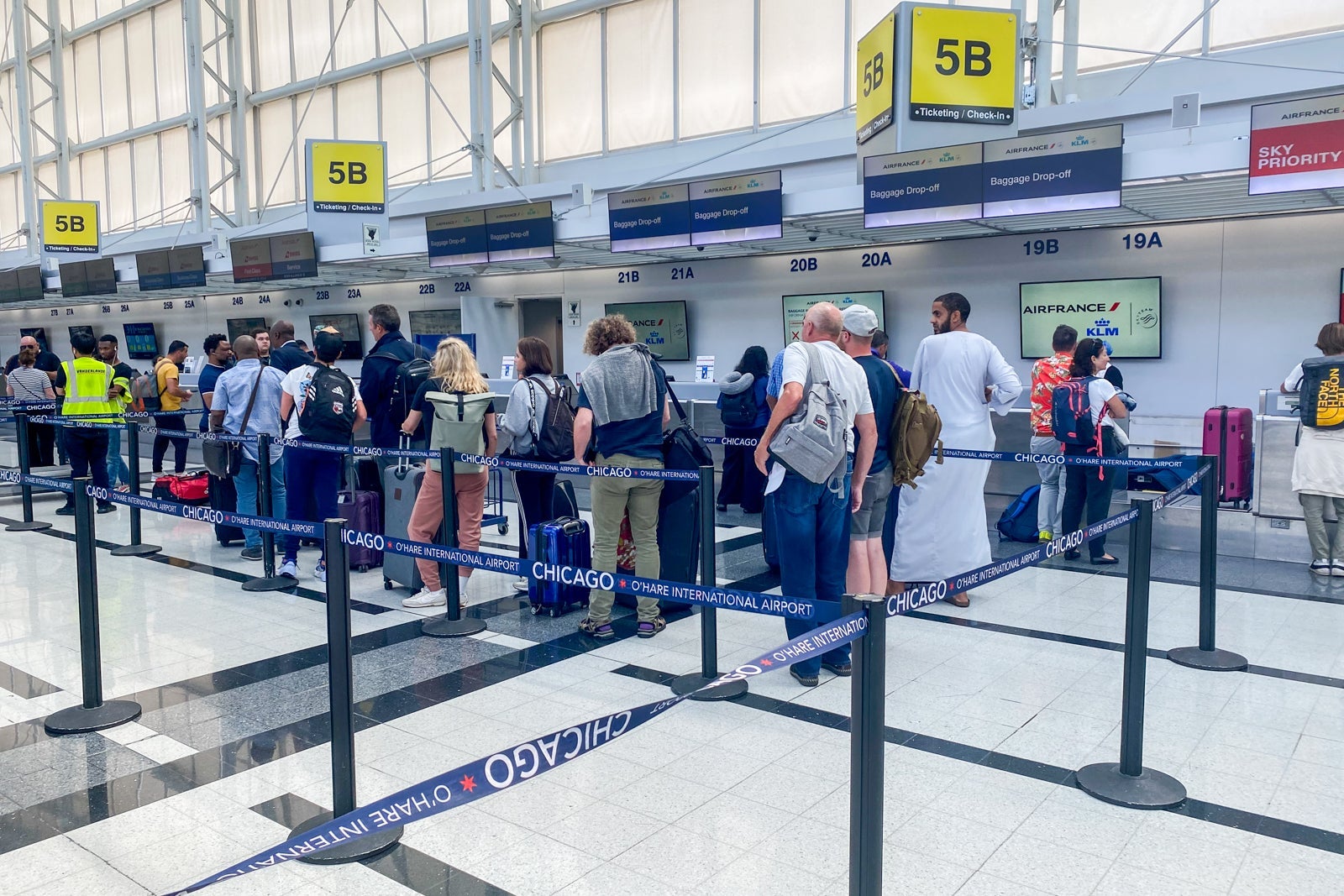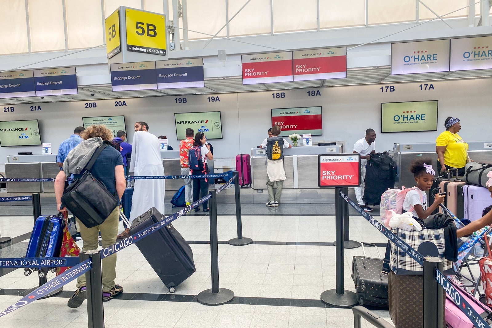 Premium economy passengers are entitled to use the SkyPriority premium check-in areas at airports. Though Chicago O'Hare International Airport (ORD) was very busy on a Sunday at approximately 3 p.m., there was no line at the SkyPriority counters. I passed through TSA security quickly thanks to TSA PreCheck and Clear, for which Air France flyers are eligible if they've enrolled in either program.