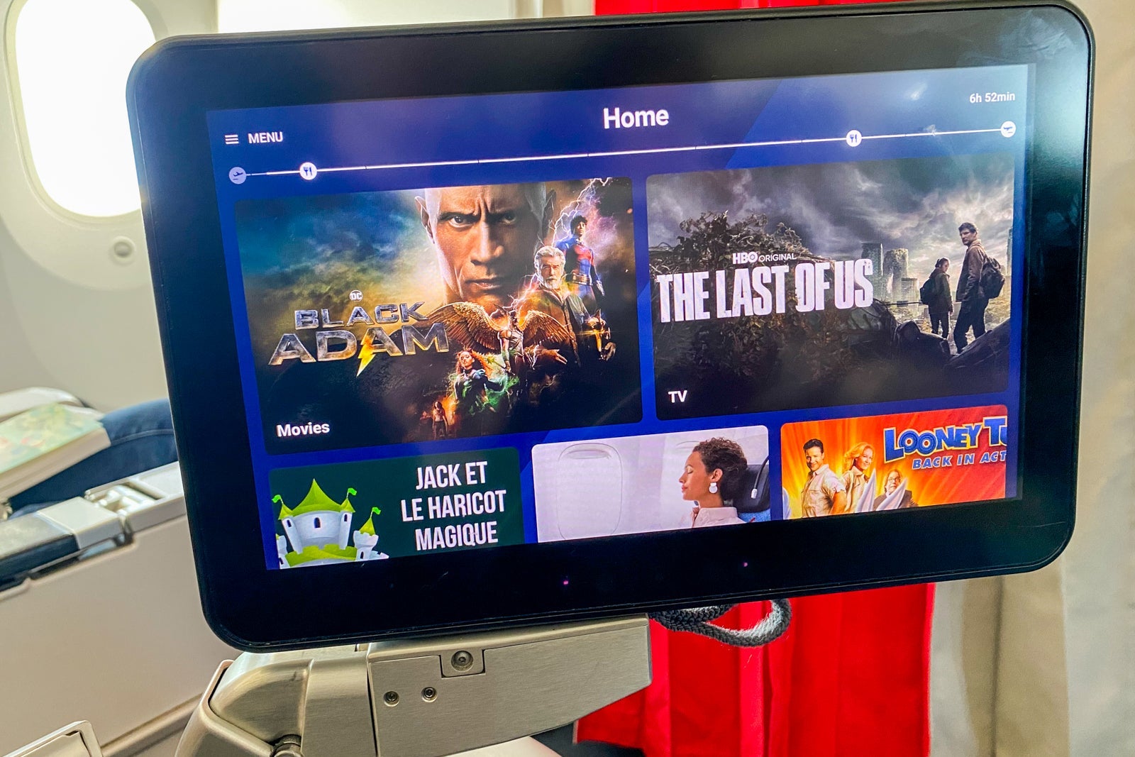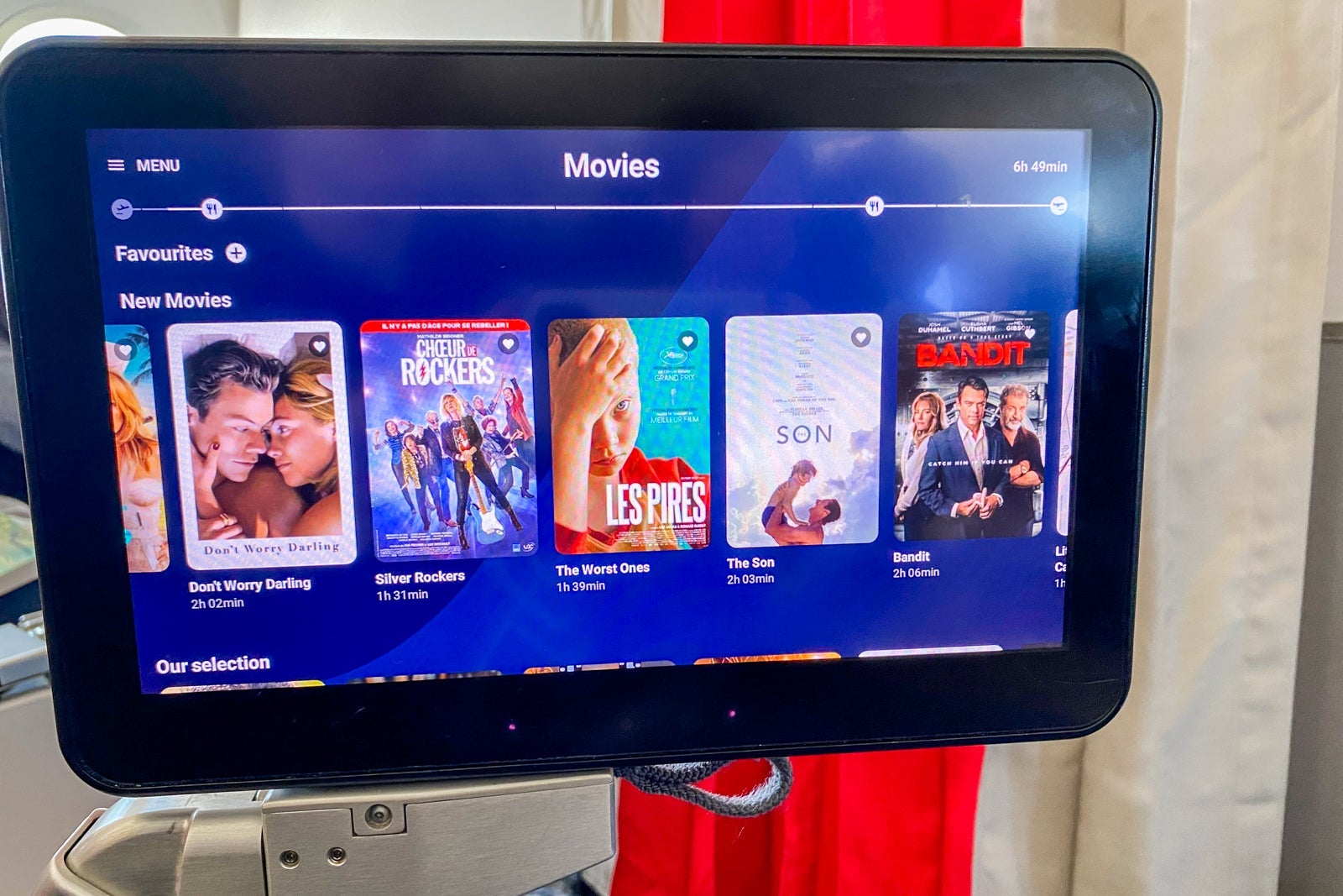 The inflight entertainment screen offered both French and American TV shows, movies and music. Entertainment options ranged from newer films like "Avatar" and "Don't Worry Darling" to classic American series such as "Friends" and "The Fresh Prince of Bel-Air."