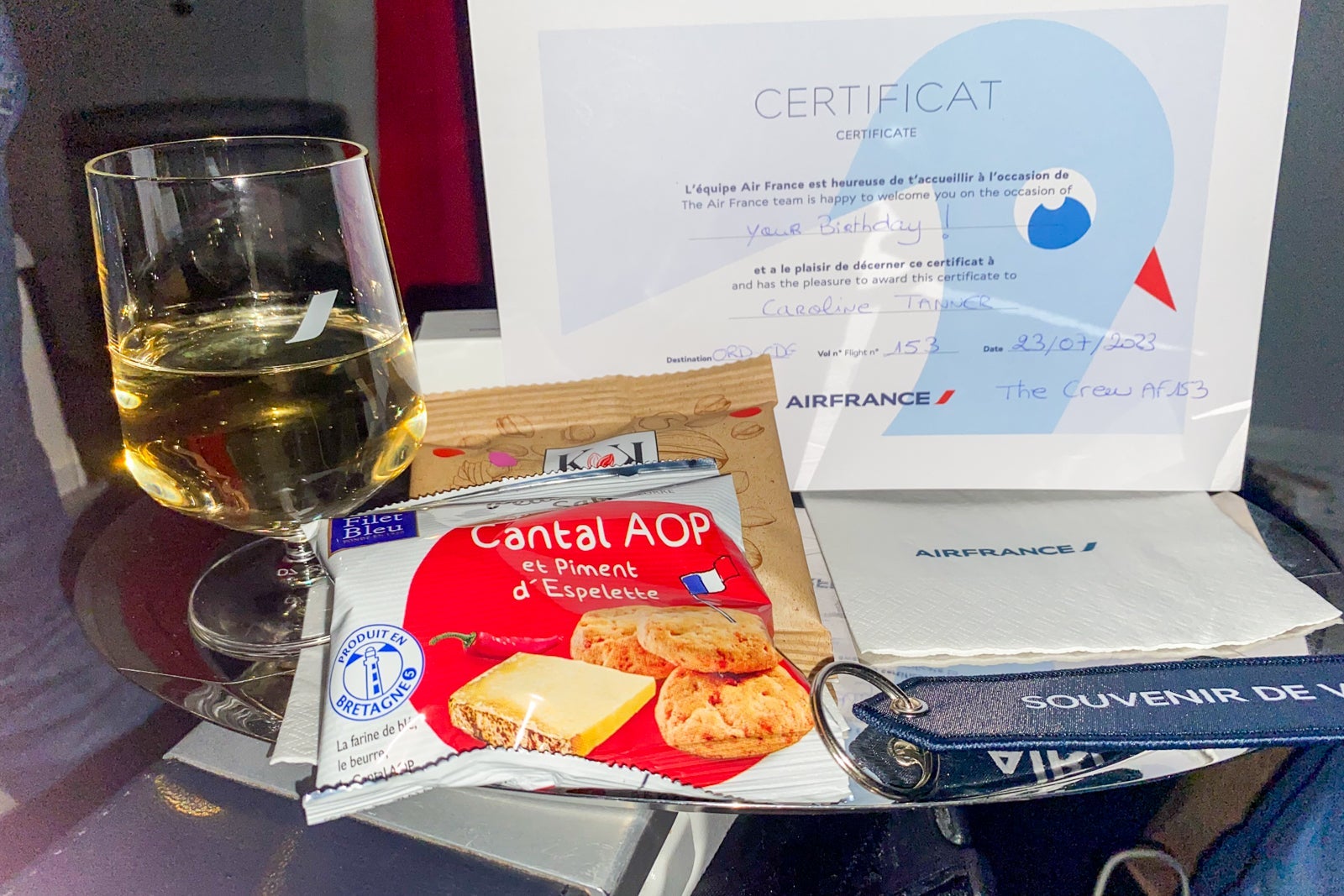 After learning it was my birthday, the flight crew offered me a complimentary glass of Champagne, cookies, chocolates and nuts shortly after takeoff. They also gave me a flight certificate and key chain. These goodies, along with the consistent check-ins to ensure I was doing OK, made me feel appreciated and celebrated on my birthday. This was a first for me, and it's a reason I will never forget this flight.