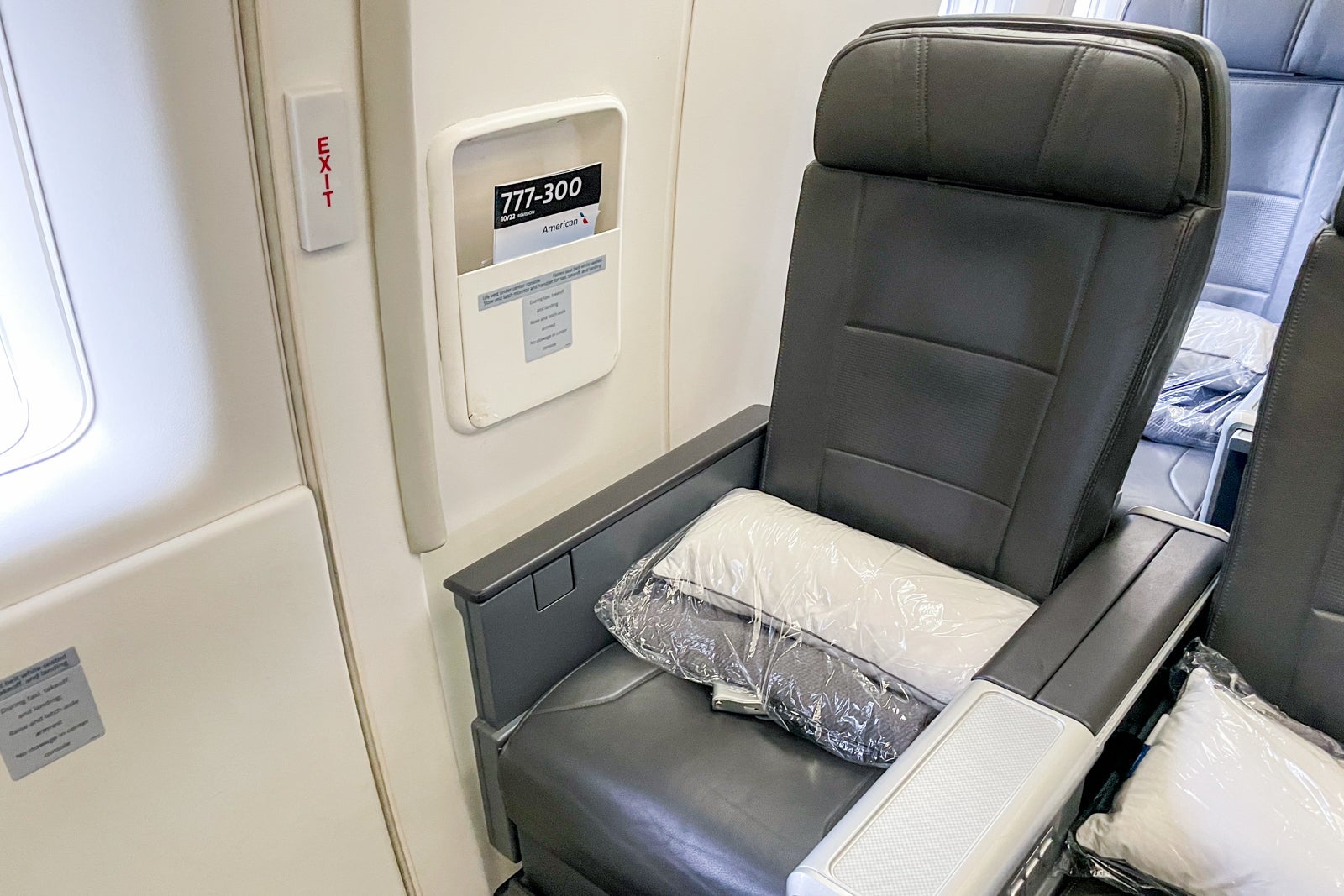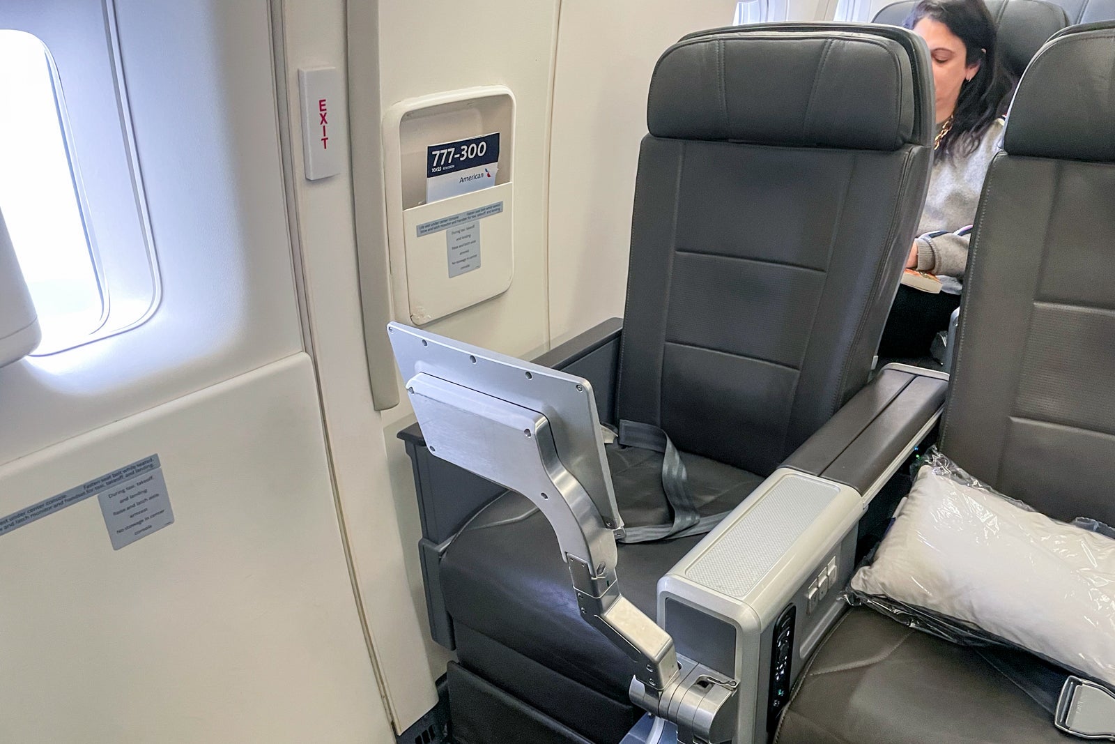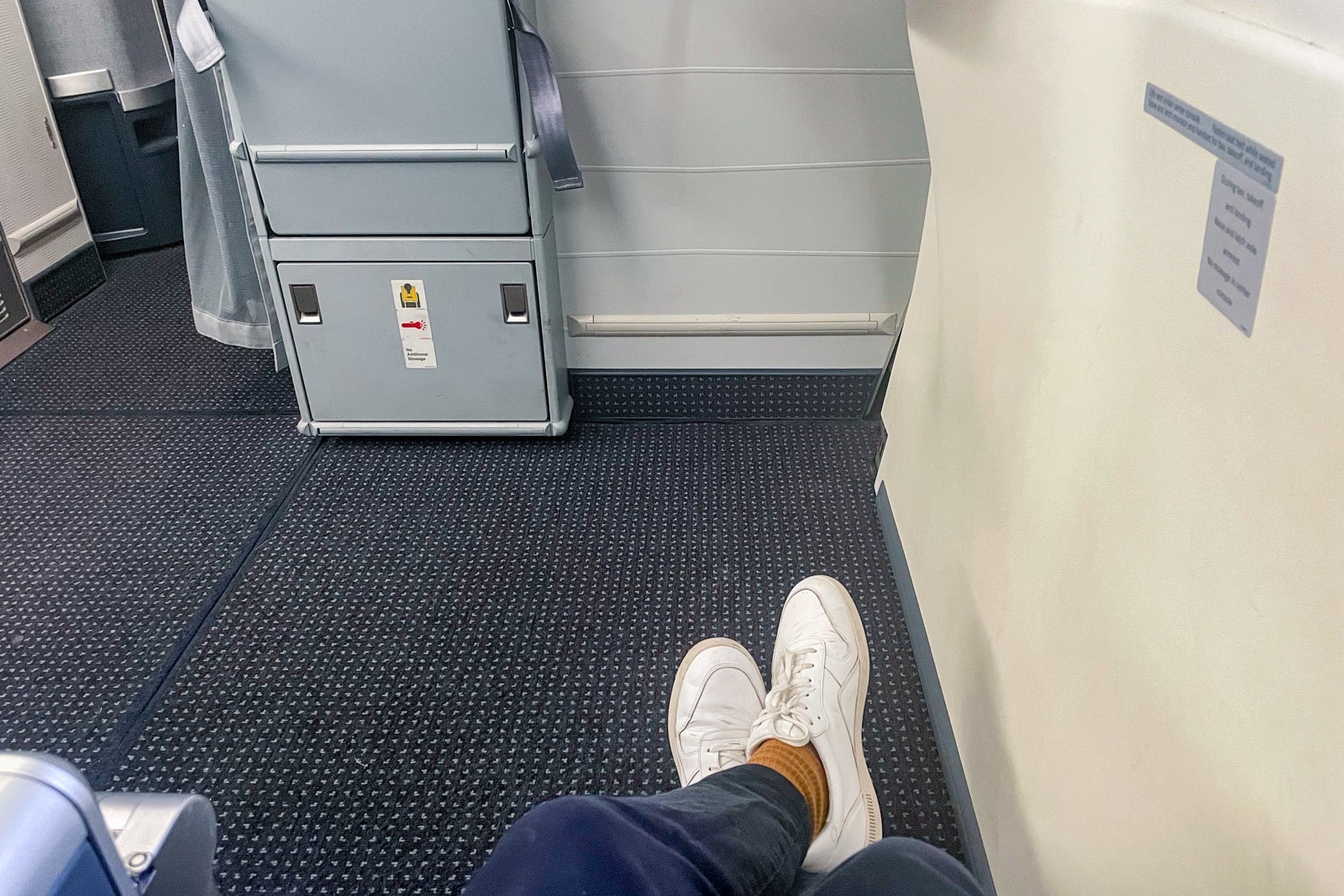My exit row seat faced the bulkhead separating premium economy from business class, and just the emergency exit. This created more legroom than a standard premium economy seat, but the additional space had some caveats.
