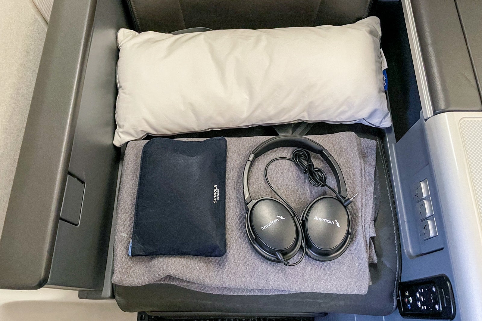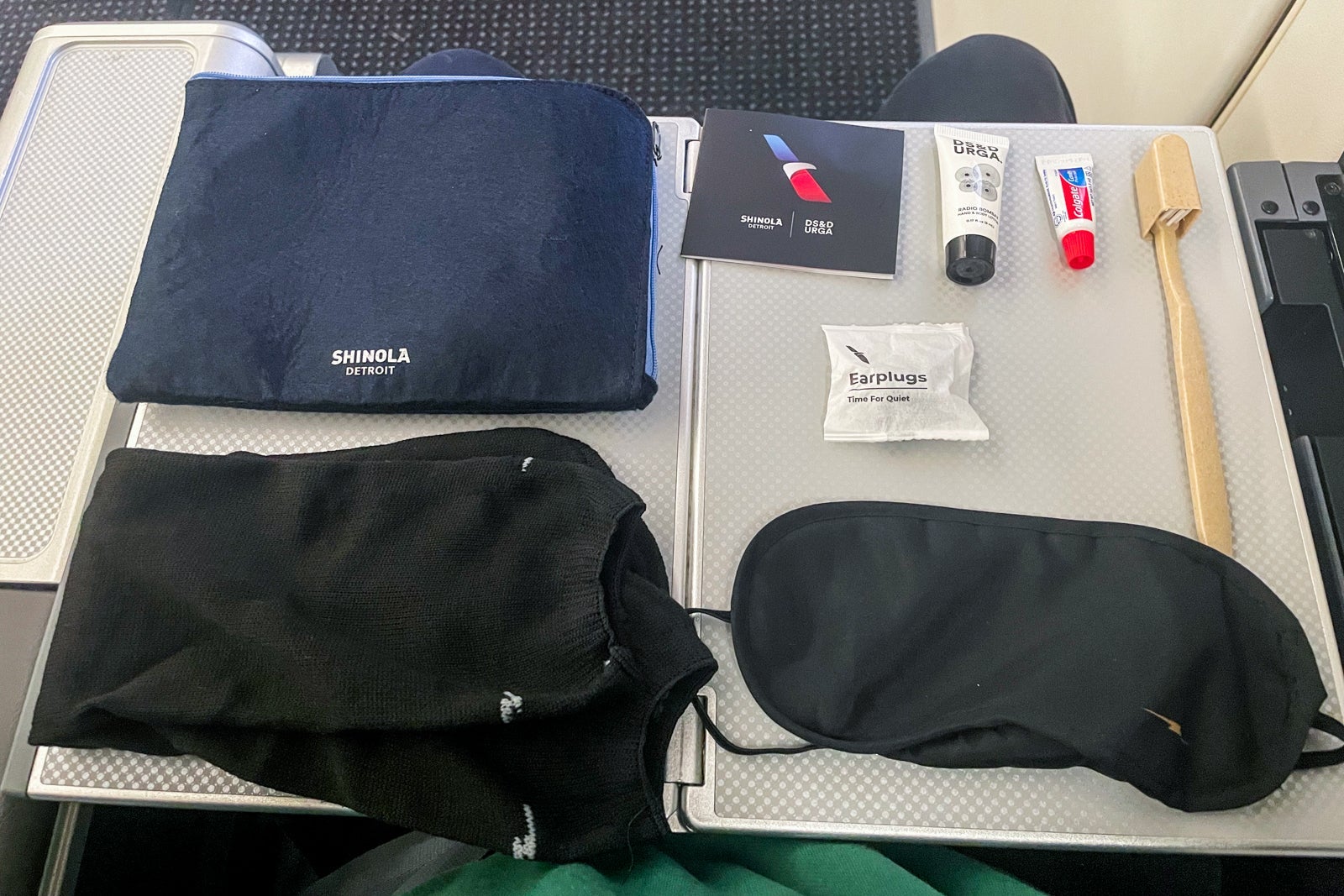 Although basic compared to some other kits out there, the Shinola-branded amenity kits added an upscale feel to the experience and contained a dental kit, American Airlines-branded socks and eye mask, earplugs, a small pen and D.S. & Durga hand lotion. These are the same contents given to business-class passengers, but in a different bag. The bag itself is sustainably produced for Shinola by Formia. The quality isn't extravagant, but I liked its eco-friendly aesthetic, and it reminded me of products you might find at Muji.