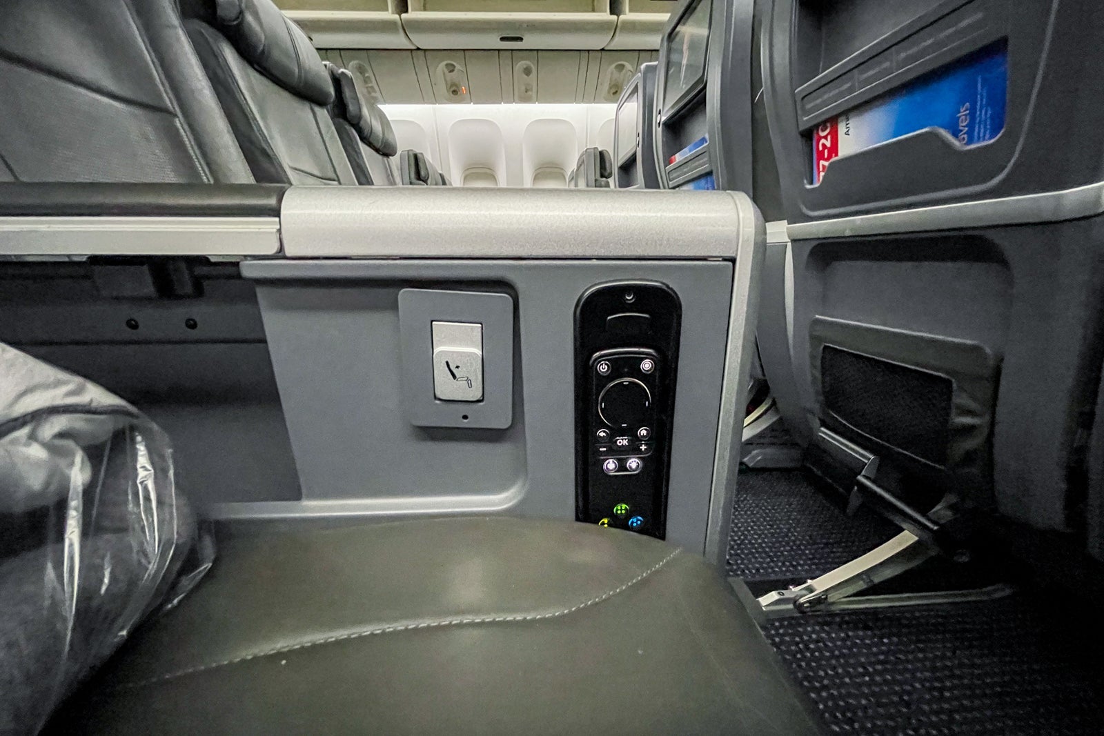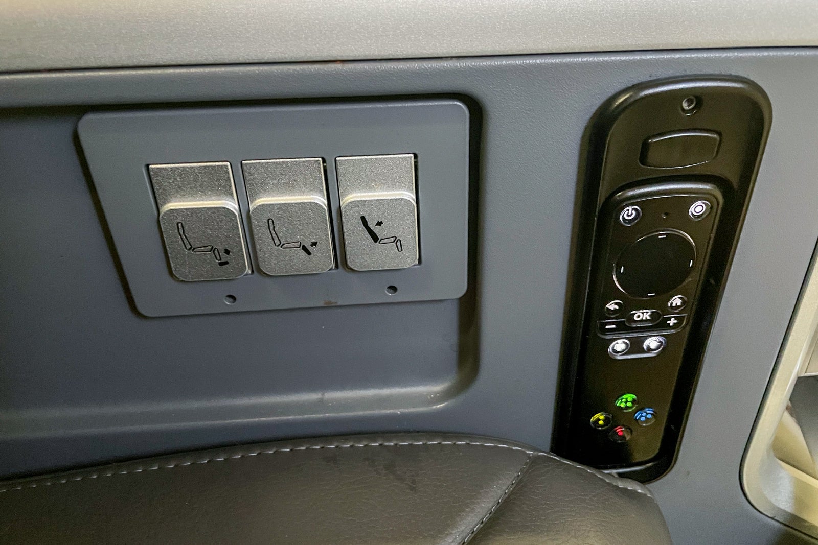 However, both styles of the seat did have controls to adjust recline (this was the singular control button for the non-exit row seat).