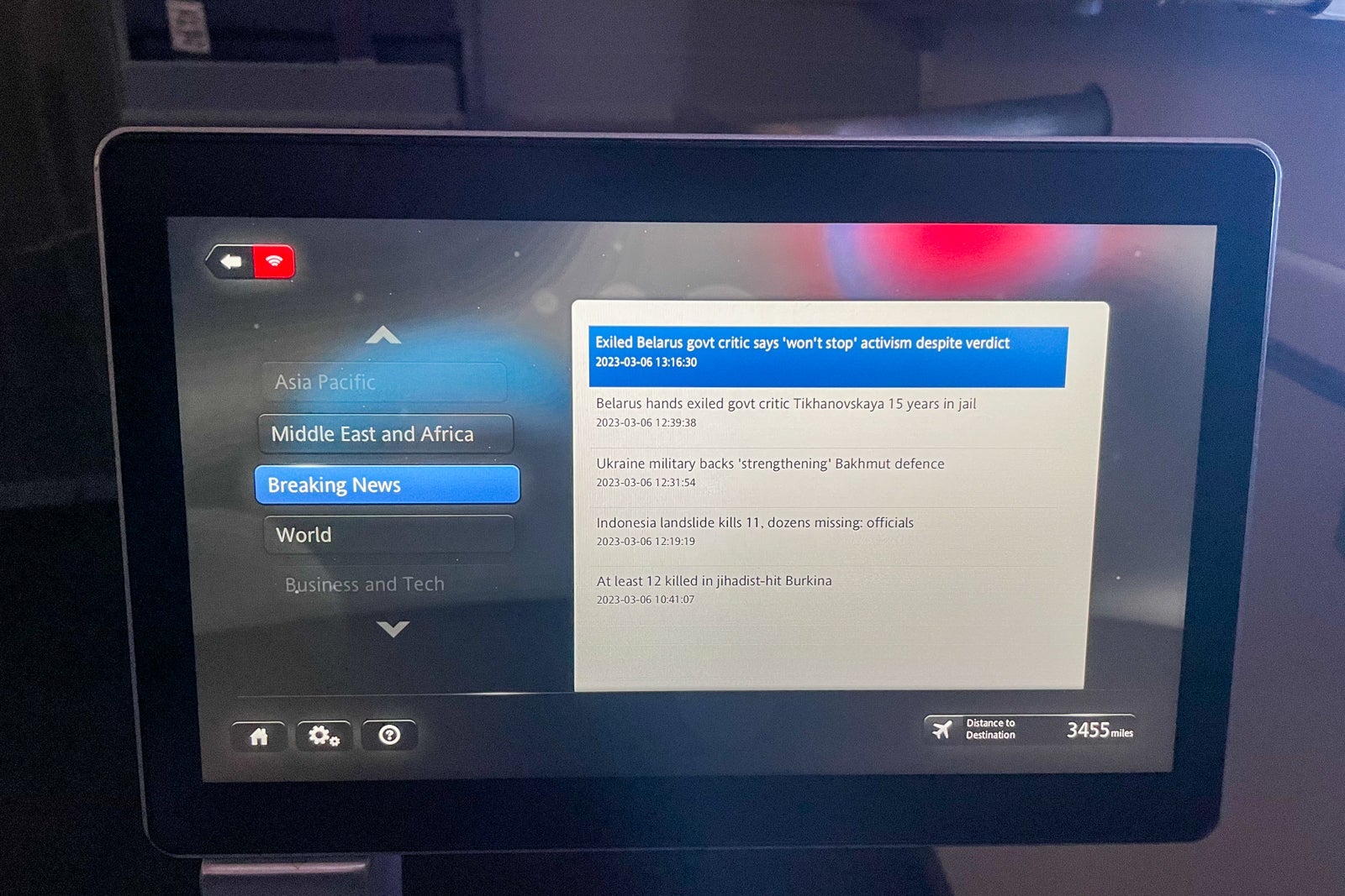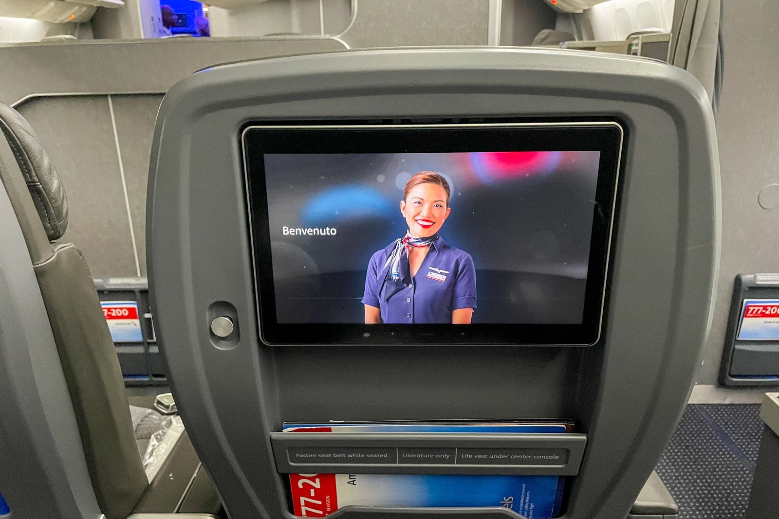 One significant perk of flying American Airlines premium economy is the 11-inch seatback screen; the larger size makes watching movies much more immersive than on the smaller 8.9-inch screens in the main cabin. It's a touchscreen but can also be operated using a remote stored in the left armrest. The content library is extensive, carrying a range of recent releases and a smattering of Hollywood classics. You can also listen to music and podcasts and play games such as Angry Birds and chess.