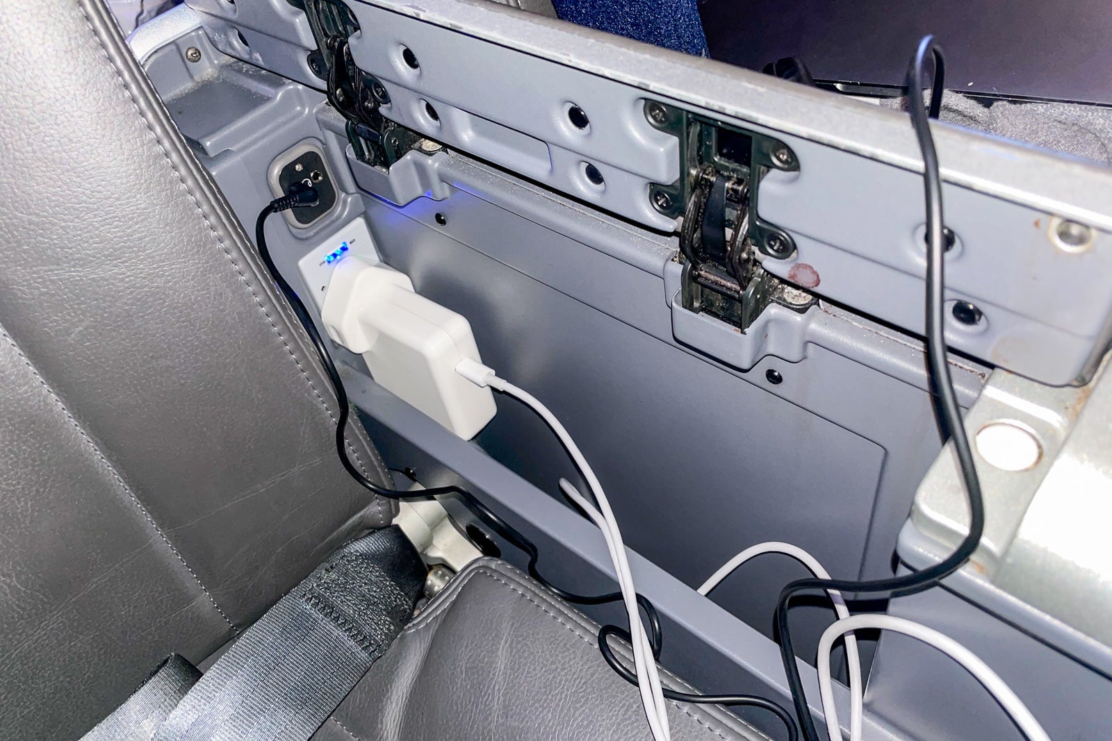 You're also unable to stow luggage beneath the seat in front of you ... as there isn't one. If you plan on working throughout the flight, laptops must be stored in the overhead compartments during takeoff and landing, which can cut down on your productivity and means getting up from your seat more frequently.