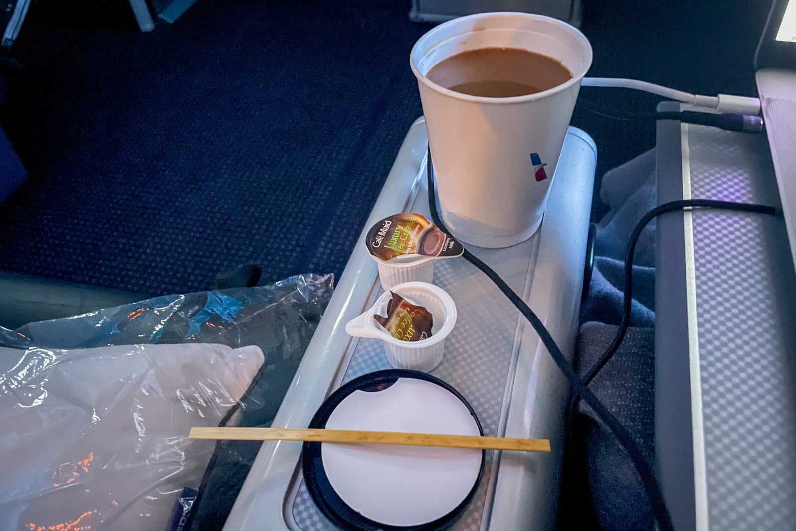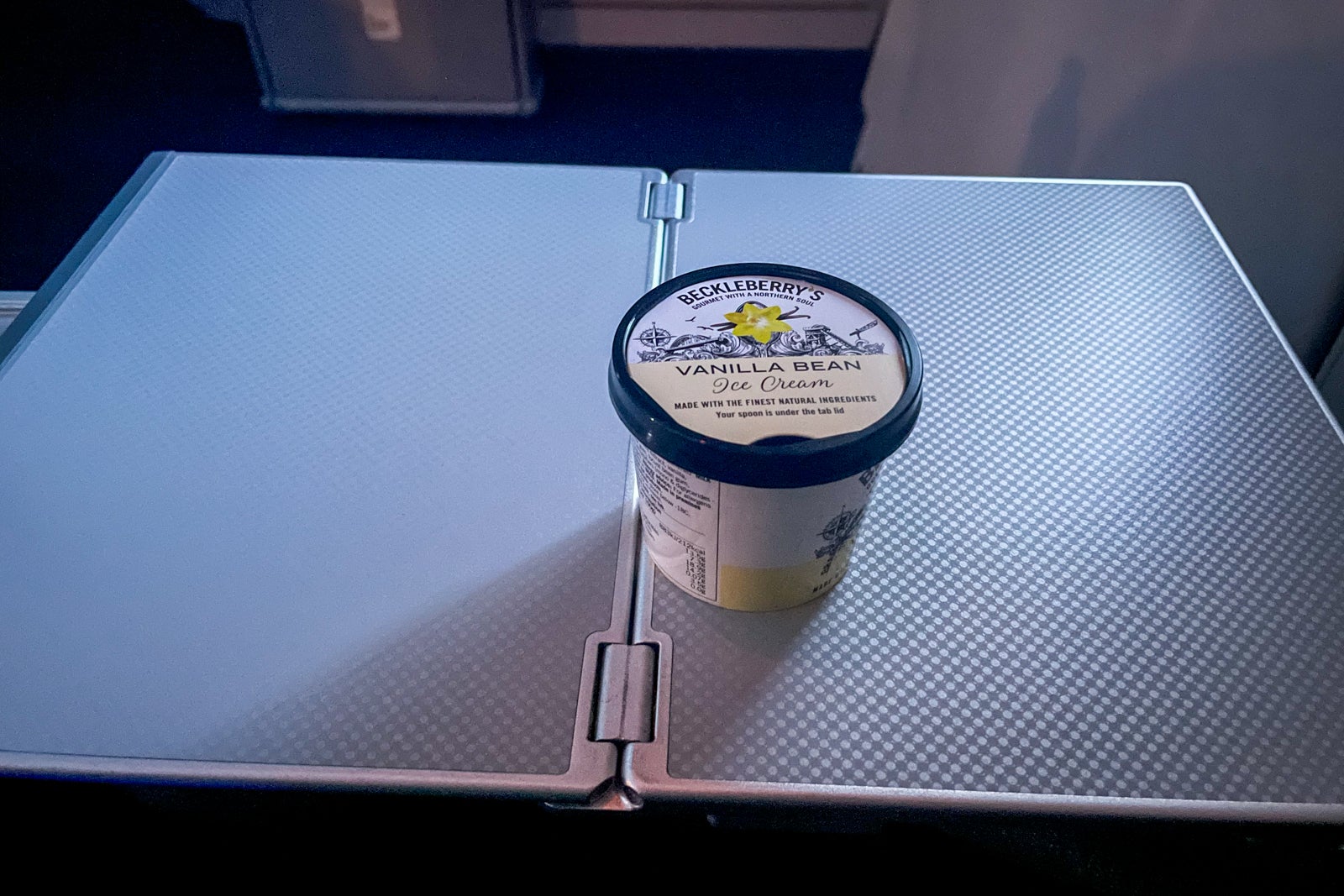 Around 2 1/2 hours after the dinner service concluded and 3 1/2 hours before landing, vanilla bean ice cream, coffee and cold drink refreshments were offered. This occurred at roughly the same point on both flights, with the same flavor of ice cream. If you're someone that likes to sleep straight through a flight like this, you may find this disruptive, though I personally didn't mind.