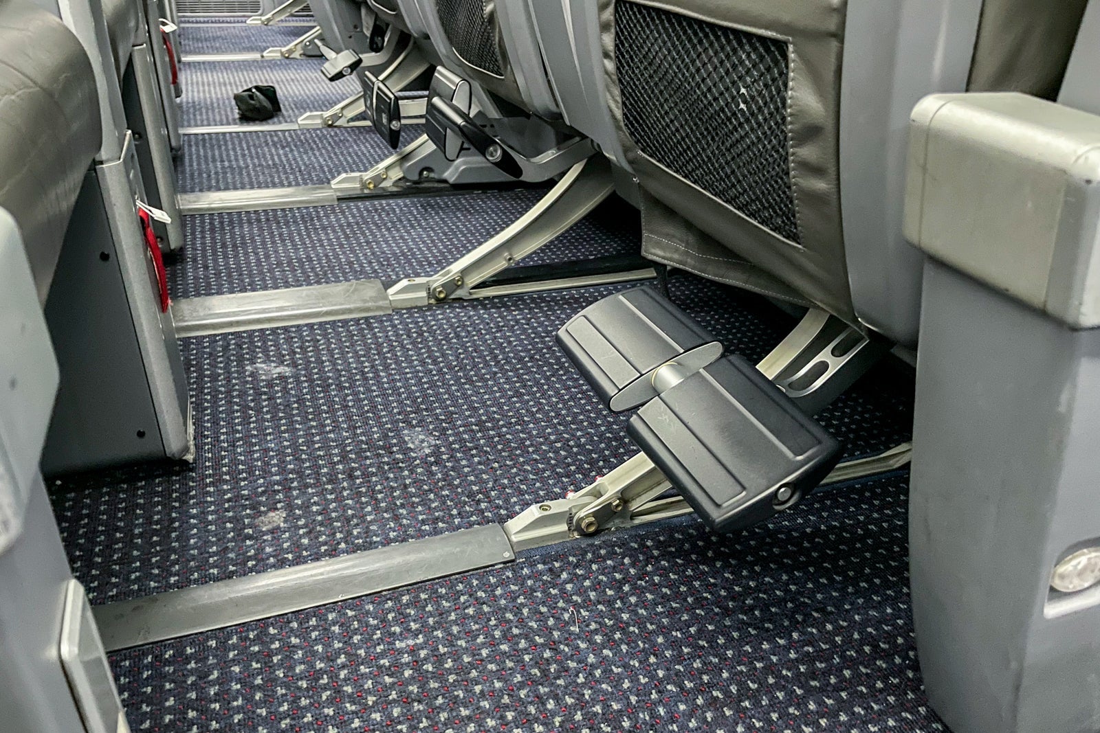The non-exit row seat on my second flight did not have a leg rest built into my actual seat and instead was equipped with only a footrest attached to the seat in front. There wasn't a control button to adjust the footrest in this aisle seat, and annoyingly, I could not alter its setting by hand either. As a result, it was set too high for the duration of my flight.