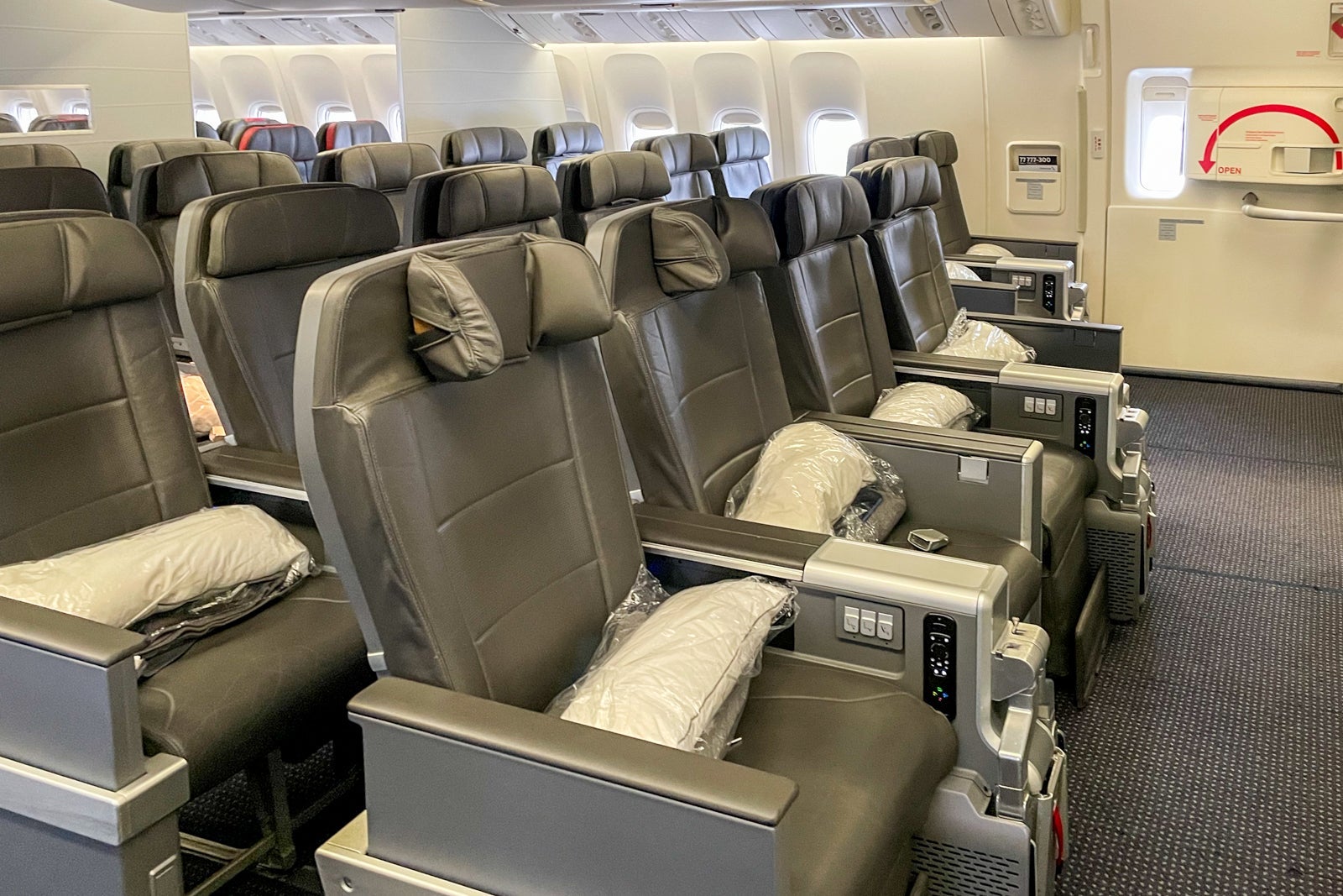 The larger 777-300ER cabin had four lavatories for both premium economy and business-class passengers situated at the front of the premium economy cabin, between it and business class. By comparison, the 777-200 premium economy cabin shared three lavatories with the main cabin, which were a considerable walk toward the back of the plane.