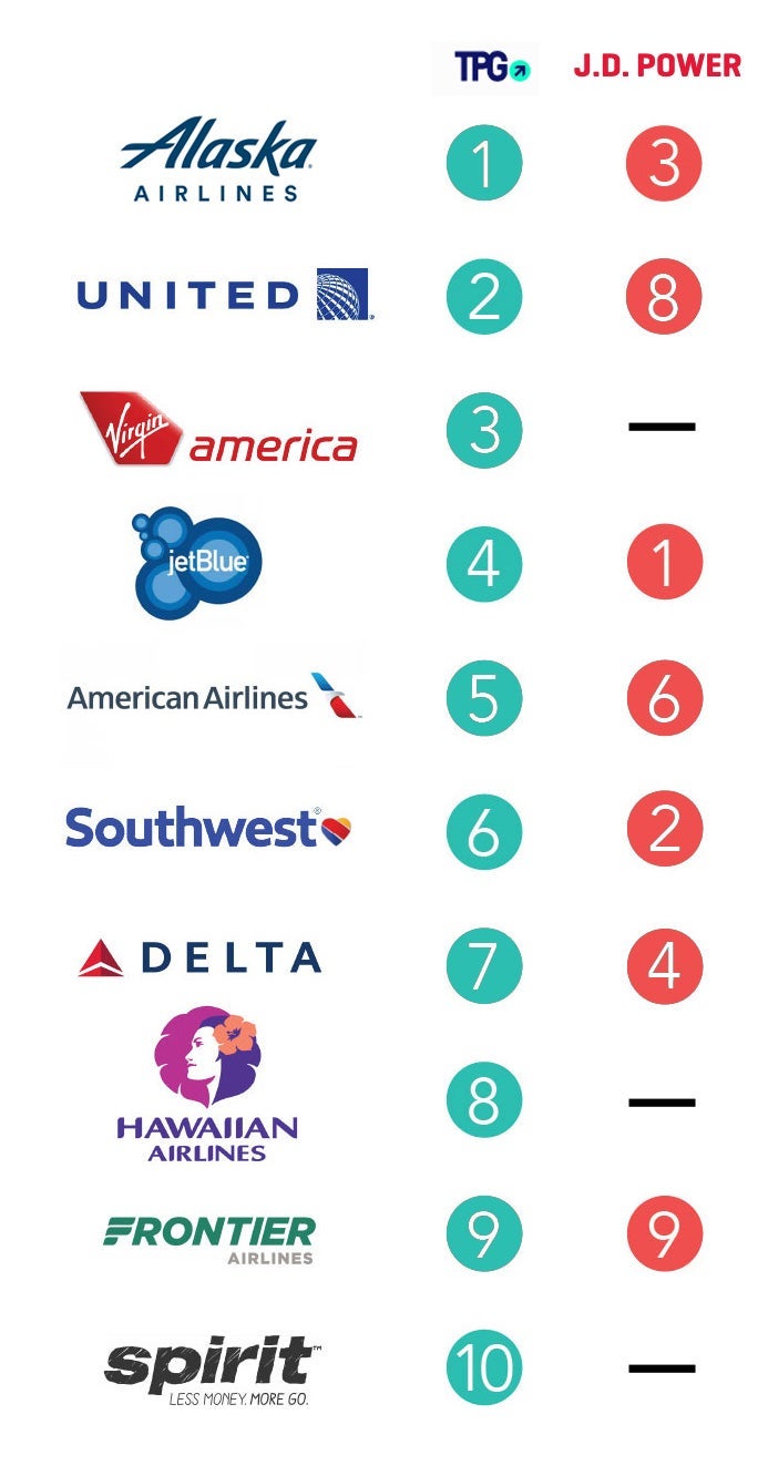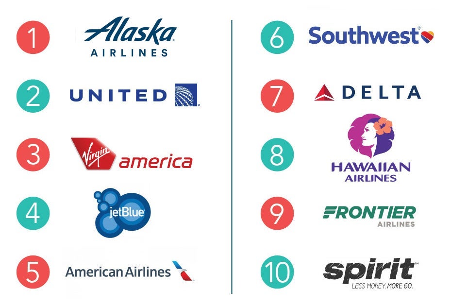 While Alaska and Virgin America have completed their merger transaction, at this time they are still operating as two separate airlines, so we kept them separate in our rankings.