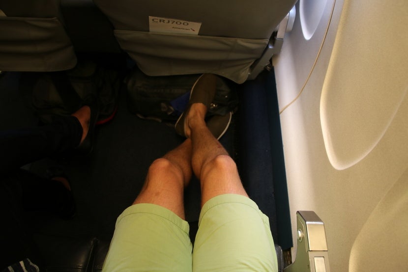 If the only seats available at booking are middle Standard seats (or no Standard seats at all), you might as well hold off on selecting one. This is when it becomes a "nothing to lose" scenario. And if you haven't selected a seat yet at check-in, wait to see what AA assigns you. If you don't like what you're assigned, you're free to choose from the same selection of Standard seats that were available at check-in, and you still have the opportunity to pay for an upgrade. Or perhaps you'll luck out like I did on my last four flights and score a free upgrade to a Preferred or MCE seat with legroom like this: