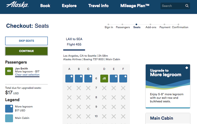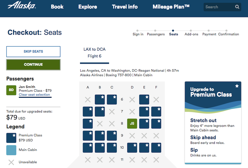 Using miles: While you can't use miles to book Premium Class outright, you can scoot yourself forward in a number of other ways. Even if you are on an award ticket, you can purchase an upgrade to Premium Select or use your elite status to move forward. Depending on the length of your flight, you can purchase an upgrade for $15-$79 each way, as you can see in the flight itineraries below. Los Angeles (LAX)–Seattle (SEA) would cost an extra $17 each way.