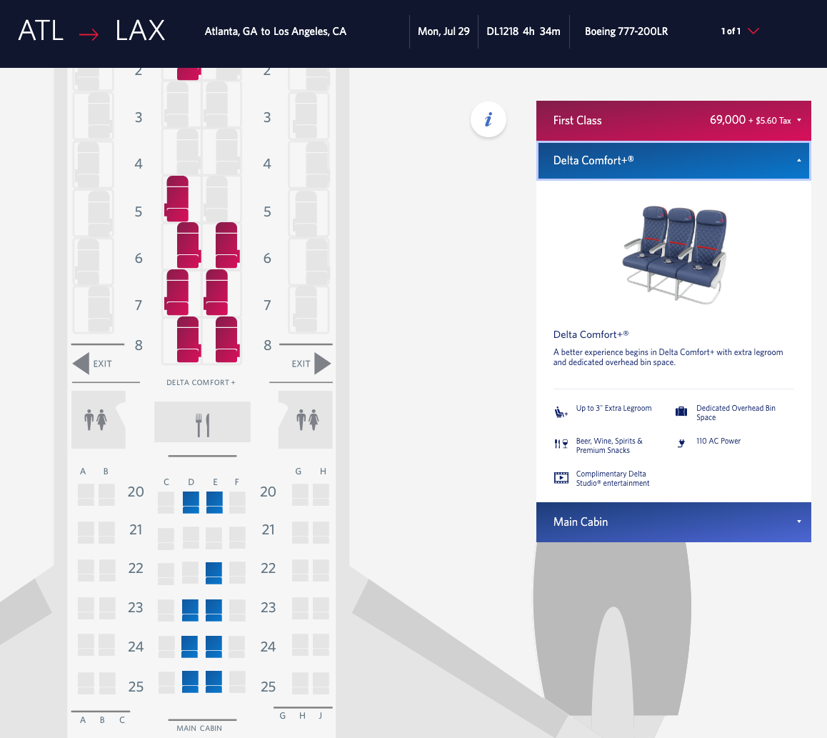 To book yourself into a Delta One Suite on this 4.5 hour domestic hop, you can search at Delta.com for nonstop flights between Atlanta and Los Angeles (or vice-versa). You'll spot the "Suite" logo on flights operated by the 777.