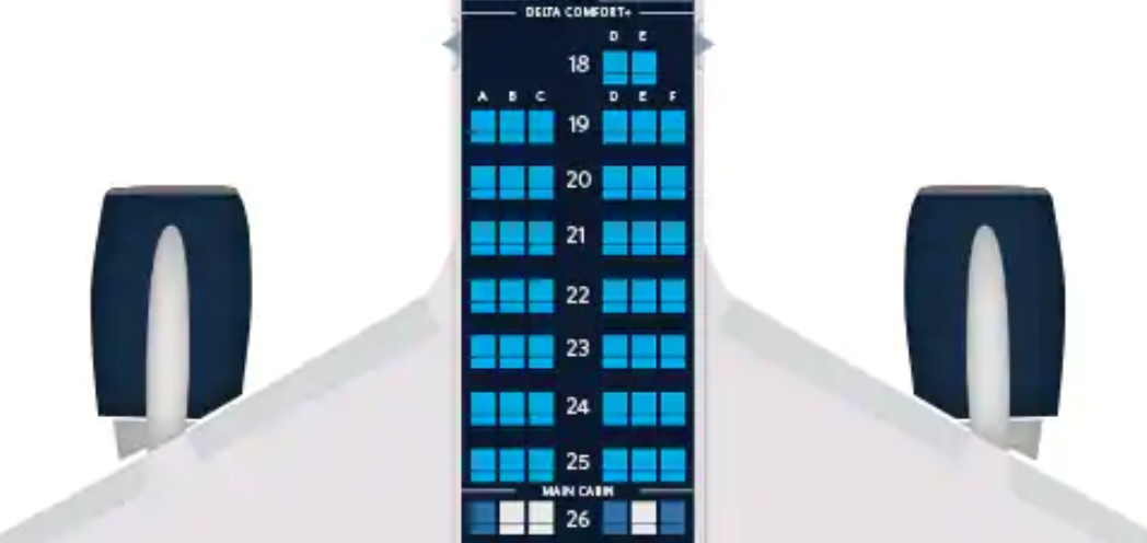 Delta has a handful of Boeing 767 variants, but the Comfort+ layout is standardized across the board. You'll find 28 Comfort+ seats arranged in a 2-3-2 configuration.
