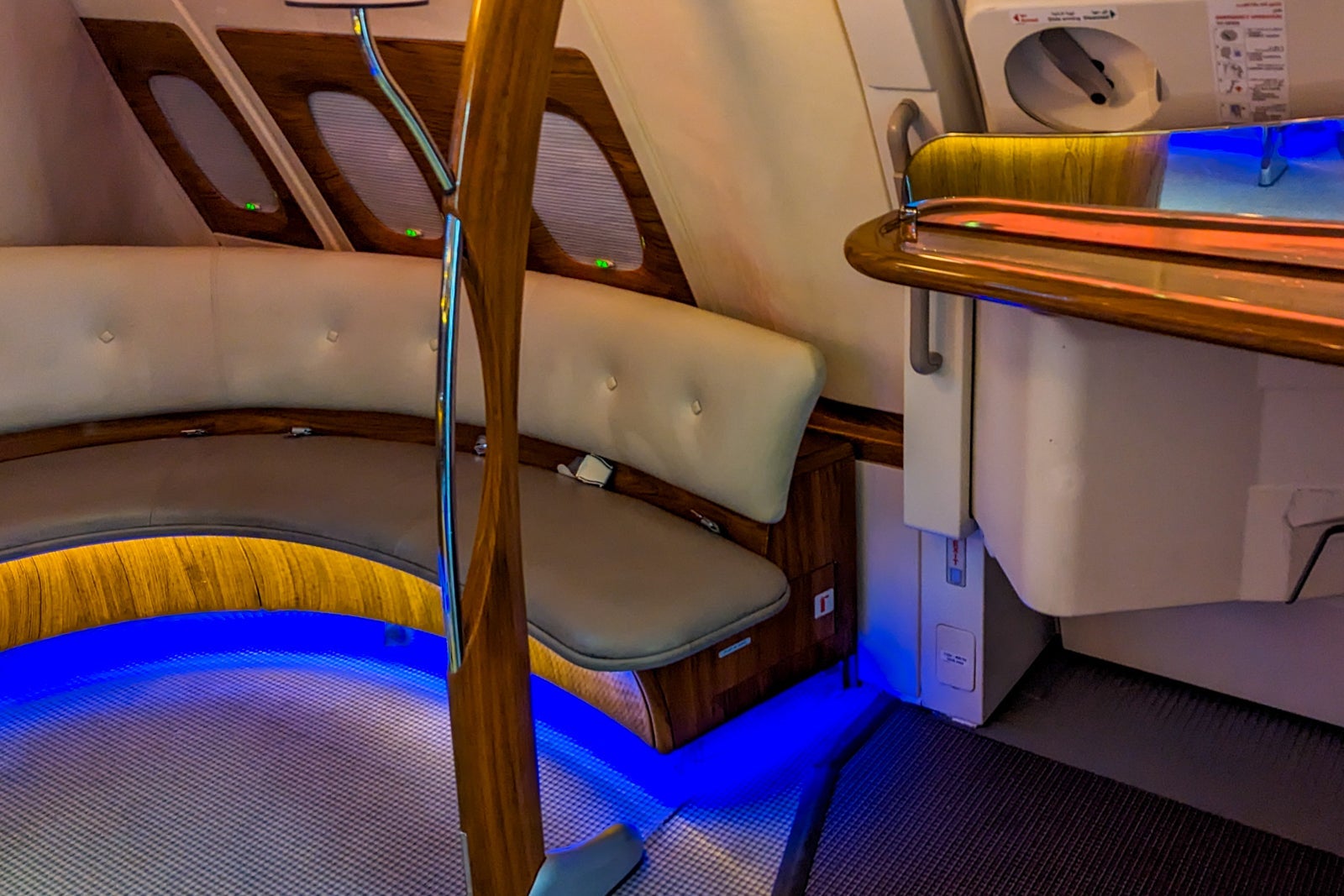 If you can fly Emirates in business or first class, it's well worth seeking out a flight operated by the Airbus A380 to experience this fantastic social space, though the first-class seat is better on some of the Boeing 777-300ER aircraft. The crew makes the experience fun and loves to chat about the airline or your travel plans, and you may find other passengers keen to strike up a conversation in this relaxed setting up in the air.