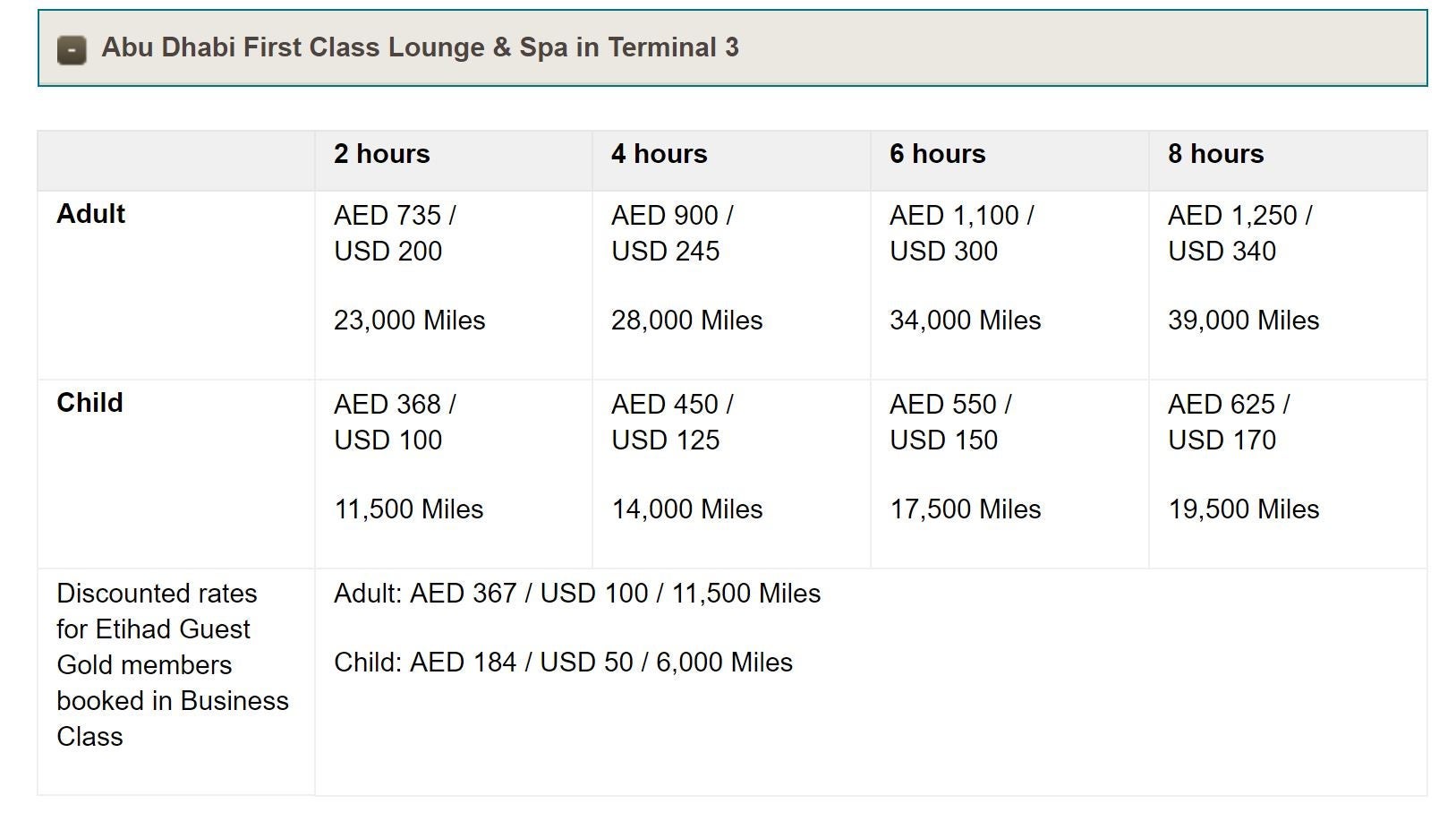 - If you want to pay using miles or cash, rates are below: