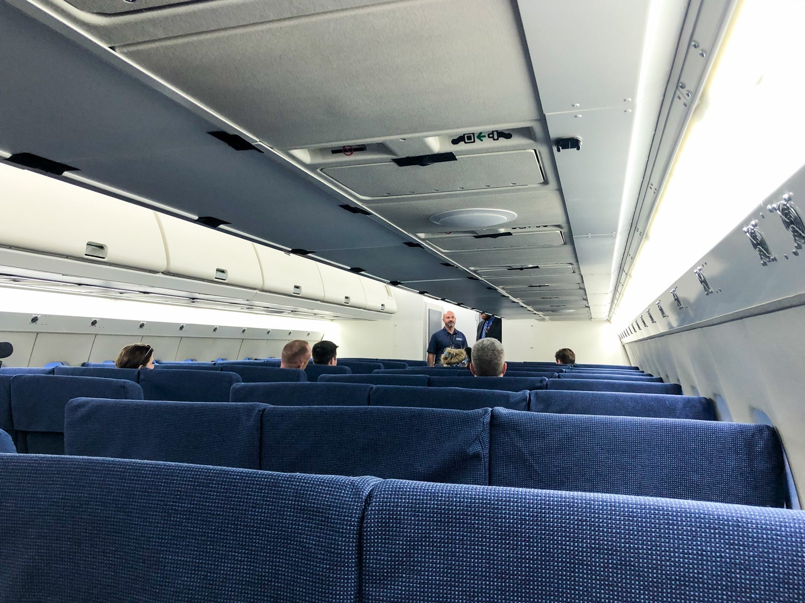 Following the briefing about the study, the group was led to the evacuation tester: the flexible aircraft cabin simulator, or flex sim.