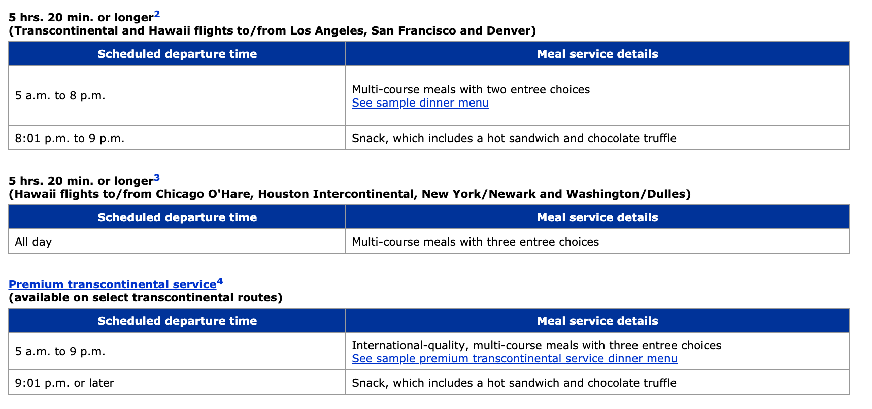 In addition, American offers a three-course meal on a number of its most popular routes under 900 miles. These include flights between: