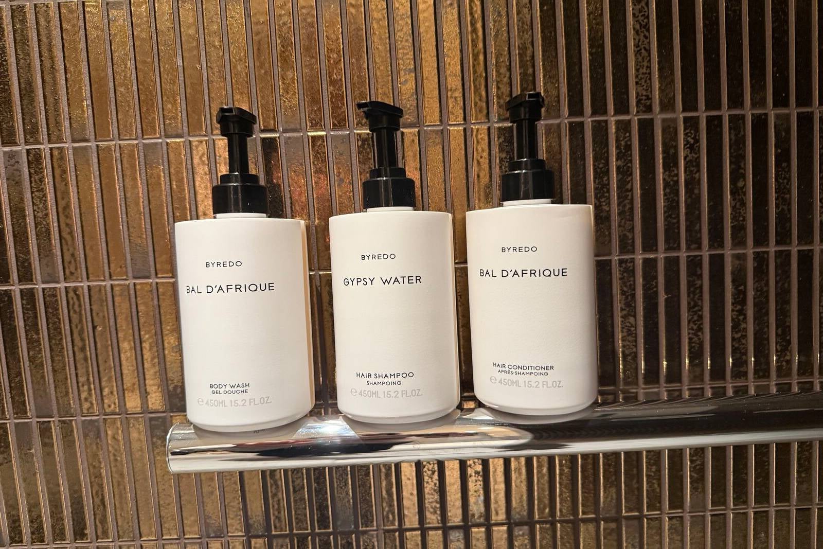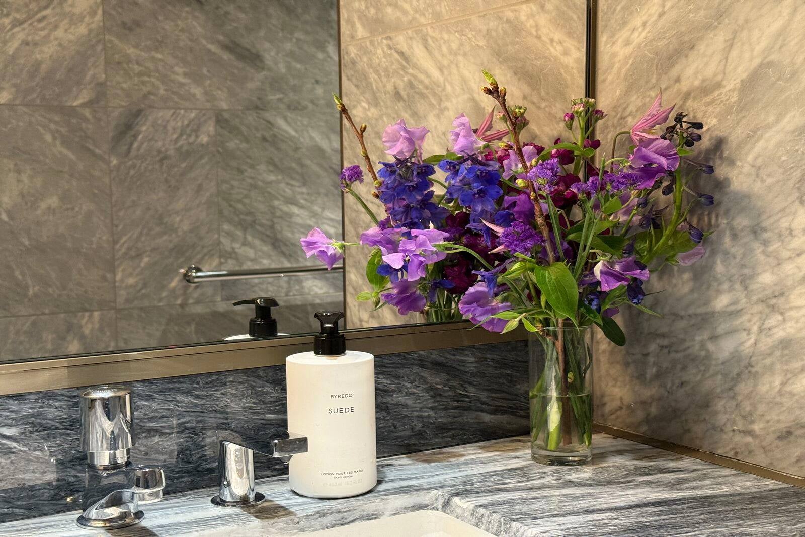 Long-haul travelers will appreciate shower suites on both floors stocked with upgraded bath amenities. First Class guests upstairs will find Aesop products, while Byredo amenities are available downstairs for Prestige and Miler guests.