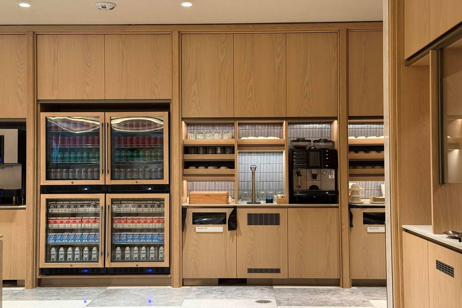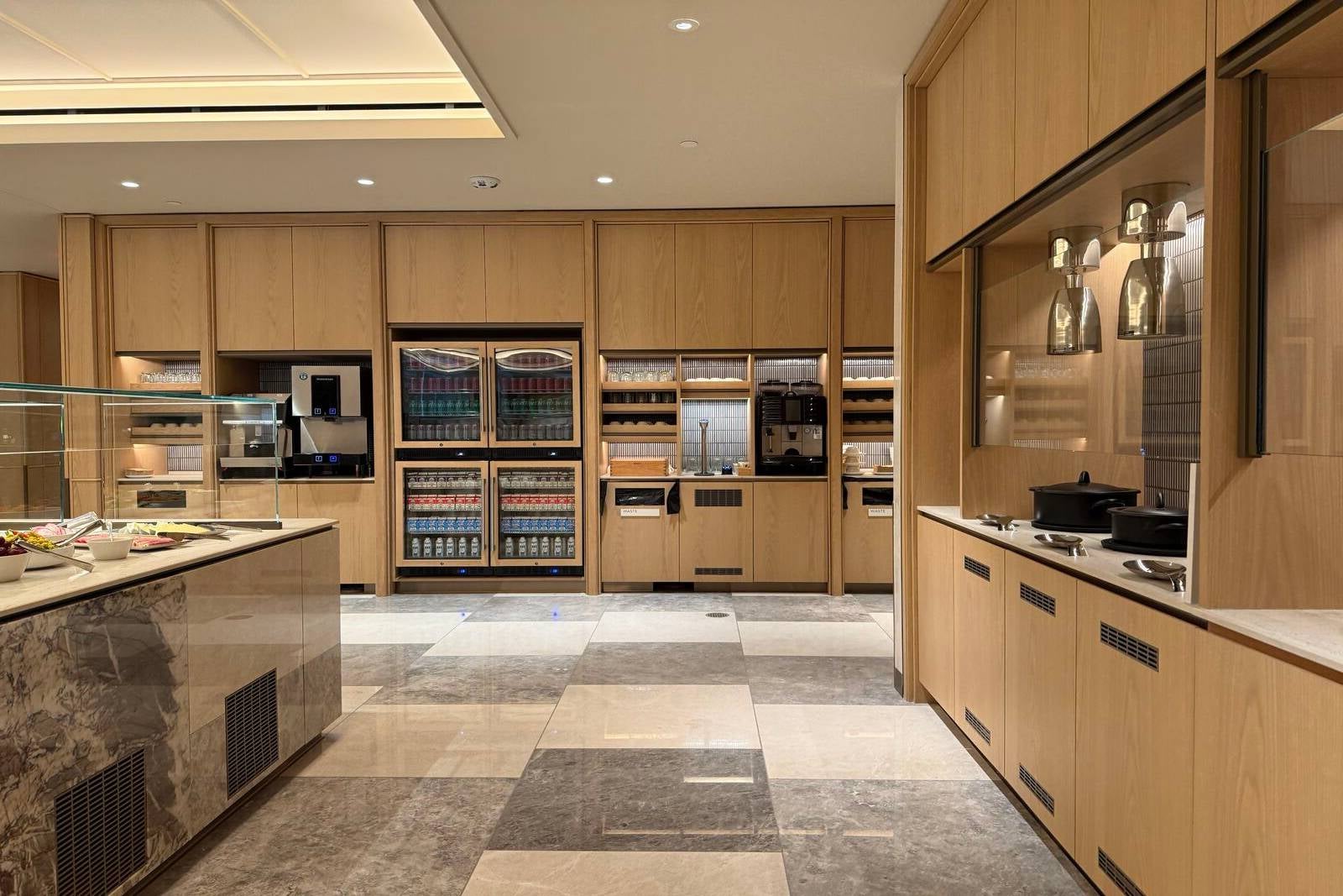 The lounge's biggest operational upgrade is a full on-site kitchen, moving away from the catered model of the past. The expanded culinary footprint required relocating the First Class Lounge upstairs and allows for a more ambitious dining program.