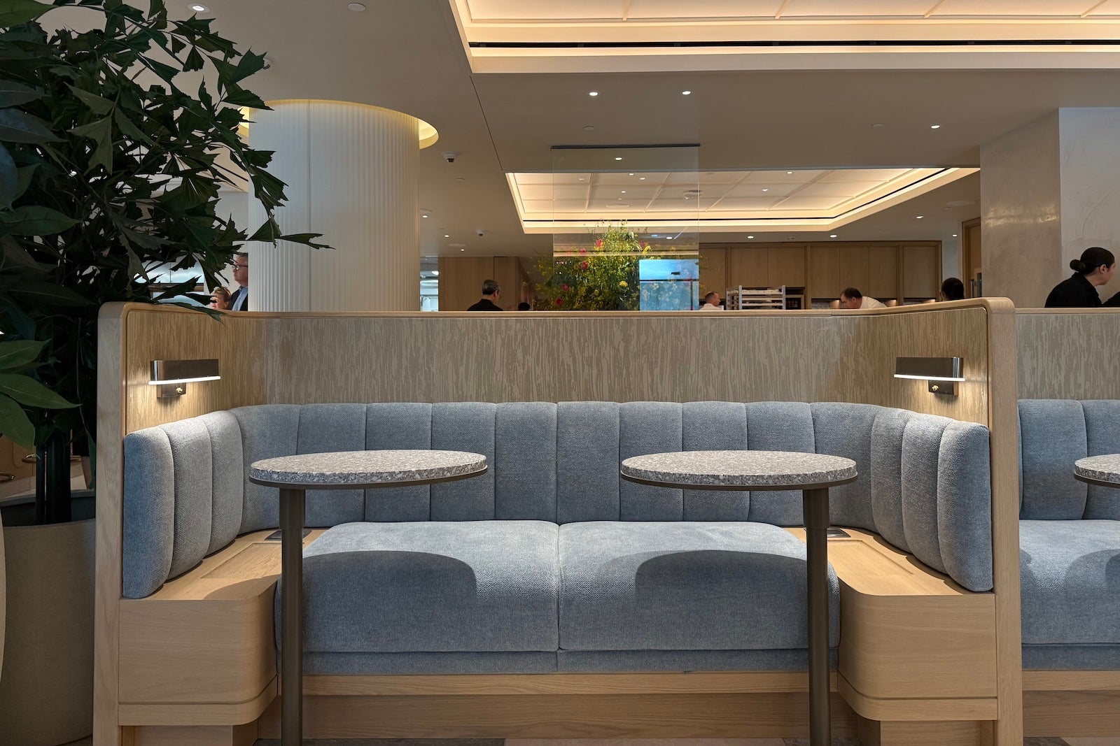 With two levels, an expanded kitchen and a design focus on making guests feel welcomed "into the airline's home," the space feels polished, premium and thoughtfully scaled.
