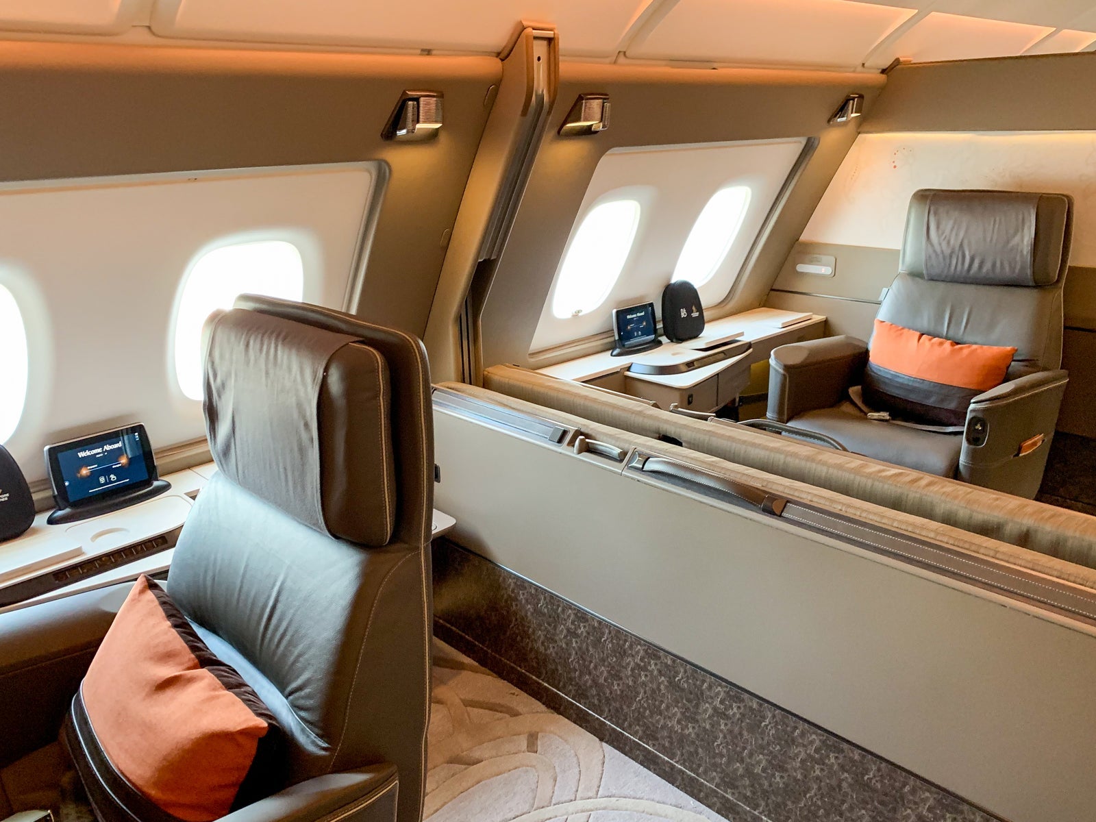 I selected seats 1K and 2K so that my girlfriend and I could lower the divider and connect our suites. As usual, I was shocked at the speed and efficiency at which Singapore Airlines can board an A380, but there were some key differences in our boarding experience from that of a longer flight. While we were offered a pre-departure beverage (including a choice between Dom Perignon 2009 and Krug 2004), there were no amenity kits or pajamas on this short daytime flight. That's a perfectly logical decision on Singapore's part, but if you're someone who likes to take home as many goodies as possible when you travel in a premium cabin, this is something to note.