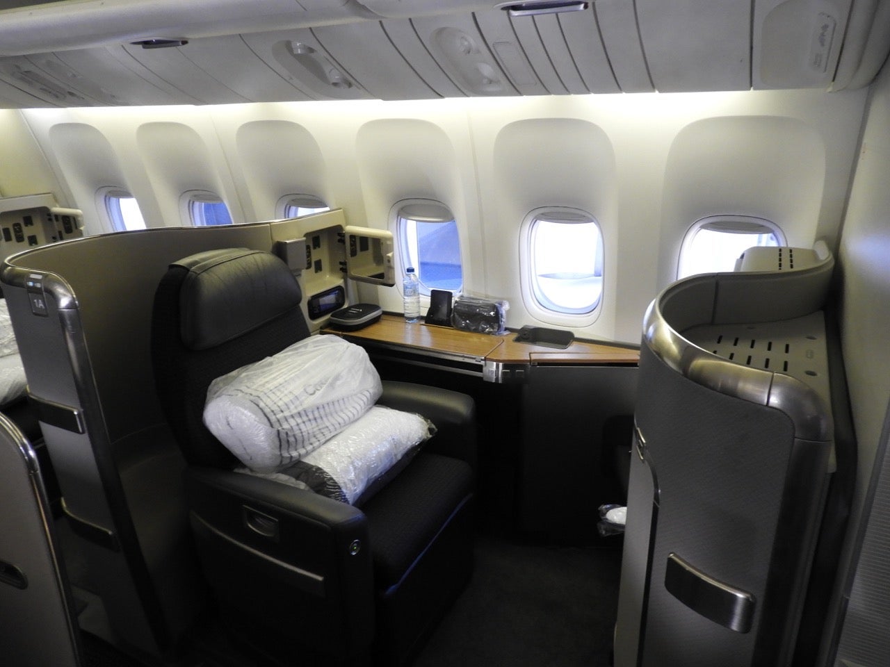 American's Flagship First seating is only available internationally on the Boeing 777-300ER. With only eight seats, this cabin is very private. The seats afford plenty of room and comfort with none of the narrow footwells found in some of AA's business offerings. The 90-degree swivel seat and two enormous tables provide office and dining space simultaneously. On the downside, these seats aren't true suites and are arguably less private than those in business. The product finishes appear dated and less than high-end.