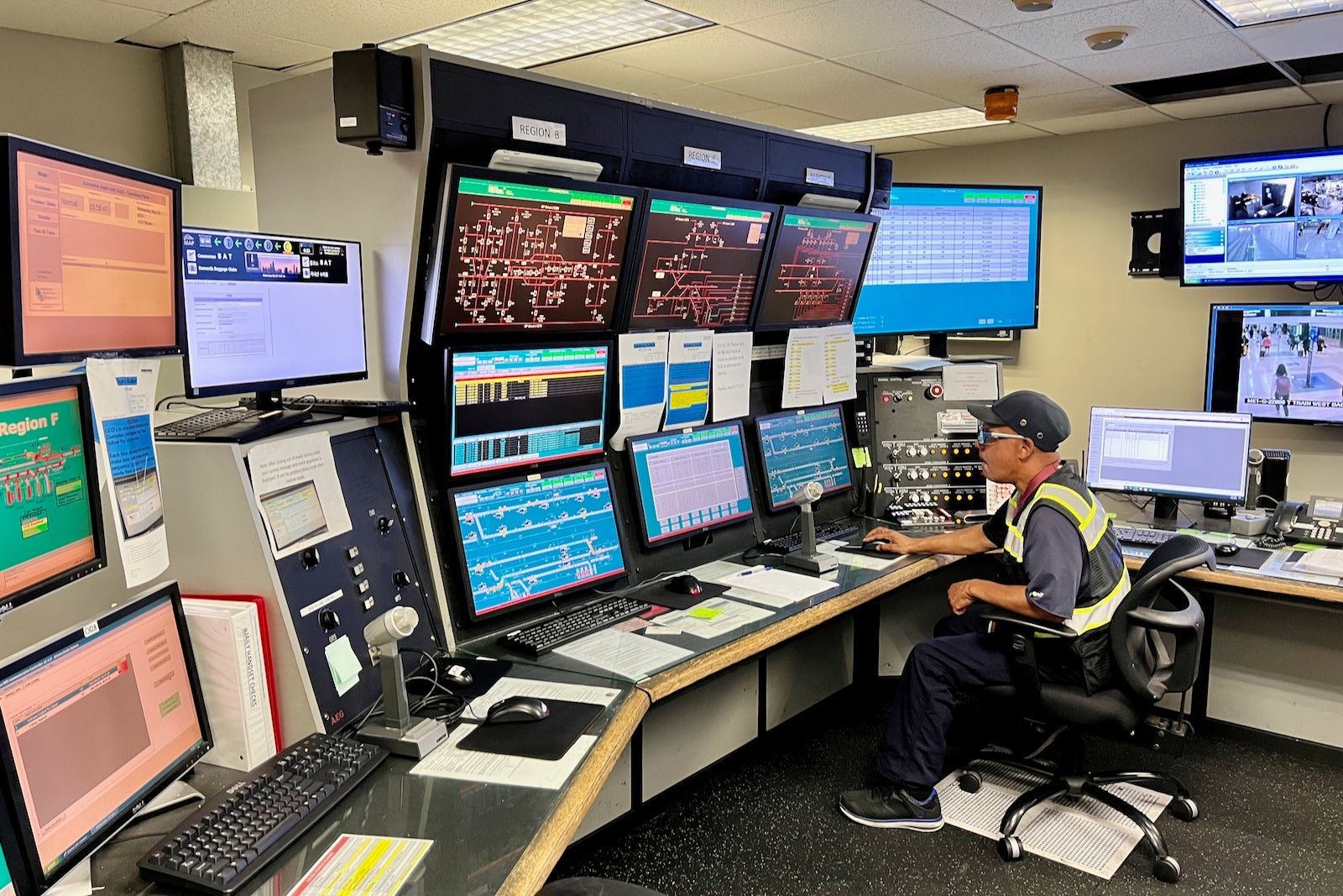 During peak hours — 5 a.m. all the way until 1 a.m. — there are 11 trains of four cars each running throughout the system.