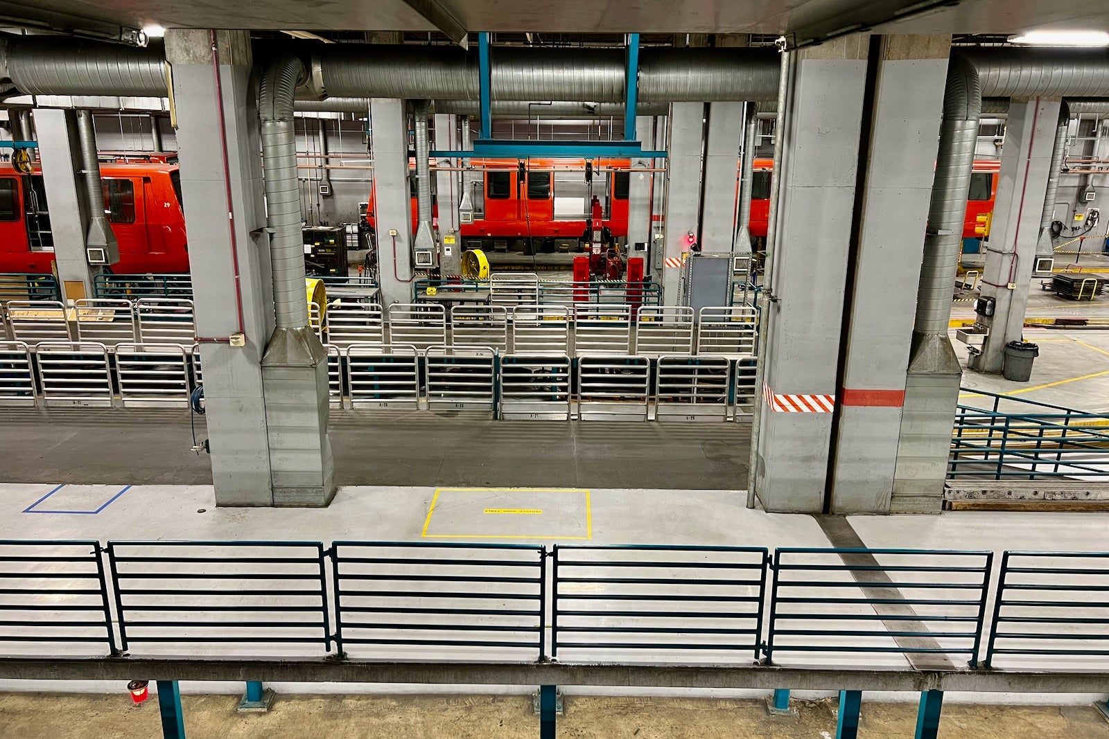 A Points Guy team (Senior Aviation Reporter Zach Griff and I) recently received a special tour of the two train maintenance facilities, located deep below the taxiways, gates and passengers above. Each night when the airport slows, it's these facilities that come alive. Overnight, the system's 11 trains (with four cars each) get everything from a minor tuneup to larger fixes, such as a repair to a door that's stuck closed.