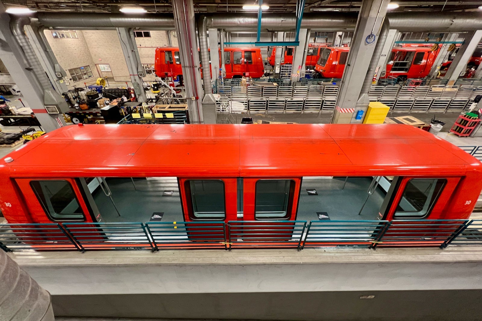 For those who really want to geek out on the technical specifications, the train cars are Bombardier (now owned by Alstom Transport) rubber tire Innovia CX-100 vehicles operating with 600 volts of AC power. Each car weighs a whopping 37,000 pounds — about 6,000 more pounds than the Bombardier CRJ200.