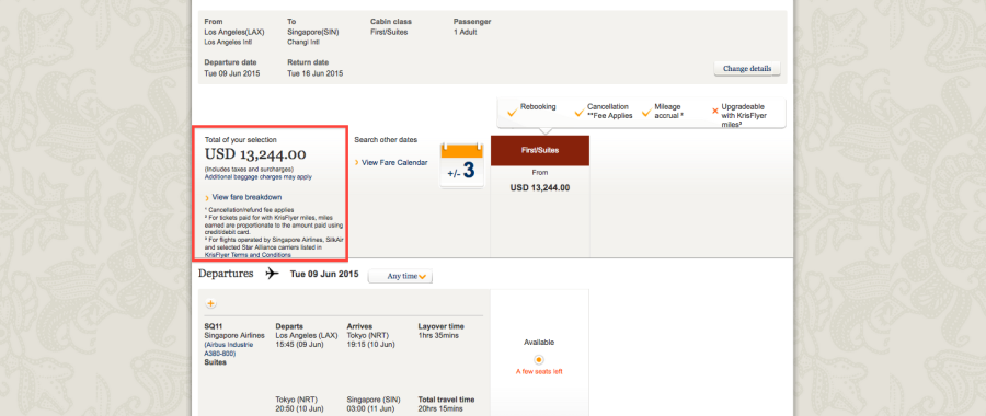 The one other consideration to keep in mind is that Singapore levies sometimes high surcharges and taxes on awards that can range up into the hundreds of dollars per flight, as you'll see in the examples below, so be sure to budget for that.