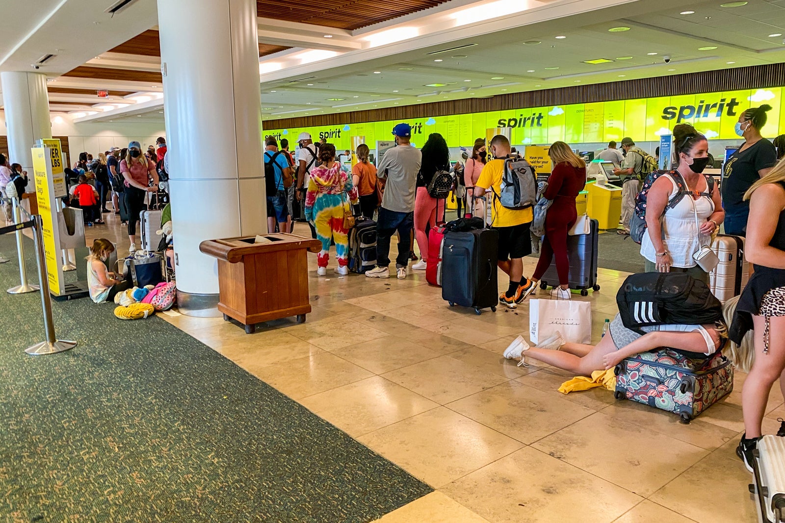 Flying with just carry-on bags will spare you potentially long lines to check your bag and avoids any lengthy wait at baggage claim when you land. The line to check a bag with some airlines, such as Southwest and Spirit, can be as long as 90 minutes at Orlando Airport on the busiest days.
