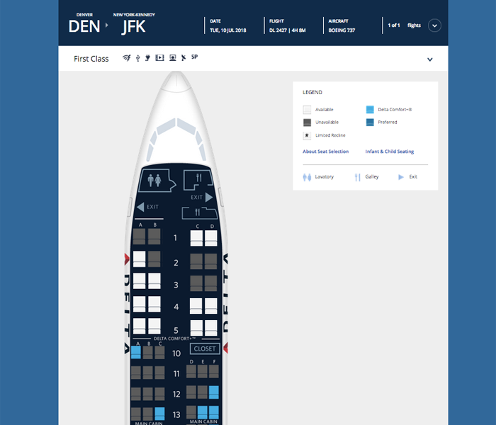 How many Delta Comfort+ seats are reserved? Since Diamond and Platinum flyers can immediately book into those seats, this may predict your stiffest competition. However, since the public can purchase those seats, it's impossible to accurately know. I was surprised how many non-elite flyers paid to reserve those seats. However, if you are choosing between two flights, go with the one that shows the most available Comfort+. In any case, you may get an upgraded C+ seat.