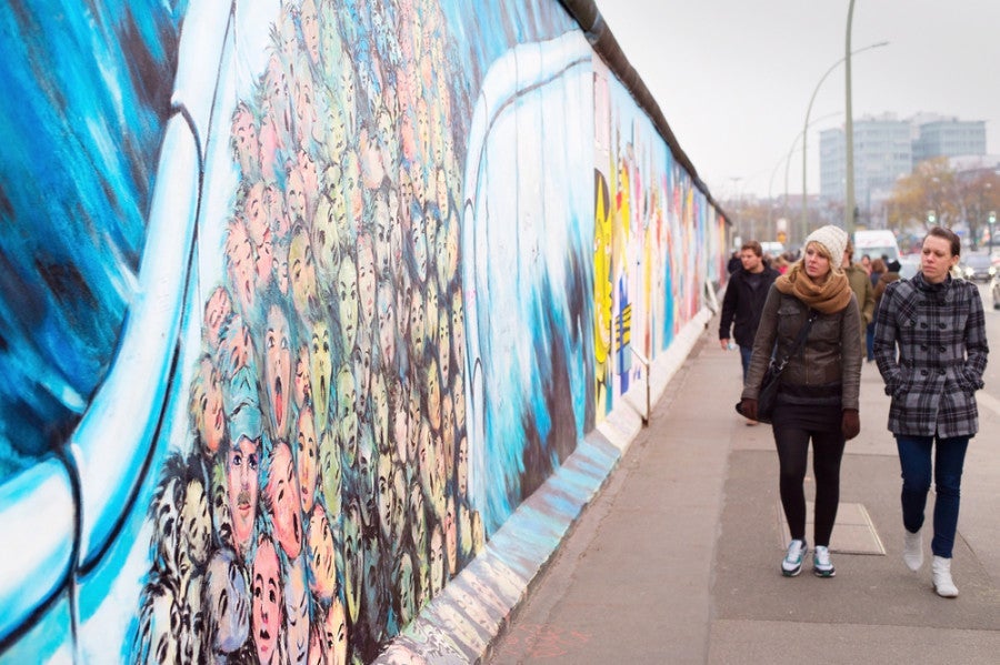 Walk a bit farther east and you'll pass the TV Tower and end up in Alexanderplatz, where you can catch the return bus to the airport, or, if you have more time, ride the S-Bahn to the Eastside Gallery—a 1.3 kilometer stretch of the former Berlin Wall painted with murals by artists from around the world.