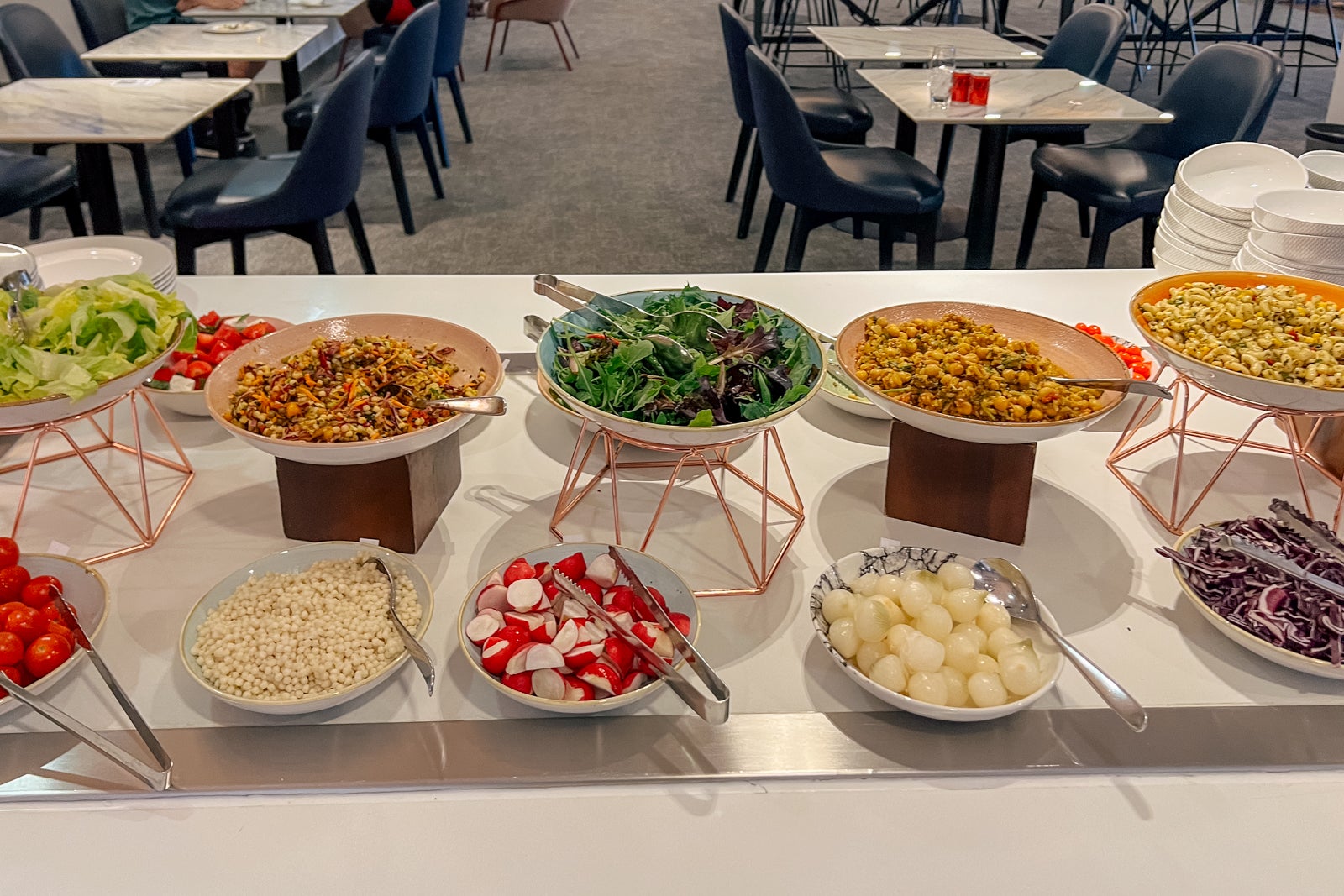 There’s no natural light, and while there is a modest buffet and some alcohol included, there is nothing particularly exciting on offer. However, the salad bar was above average for a lounge, if that’s what you want.