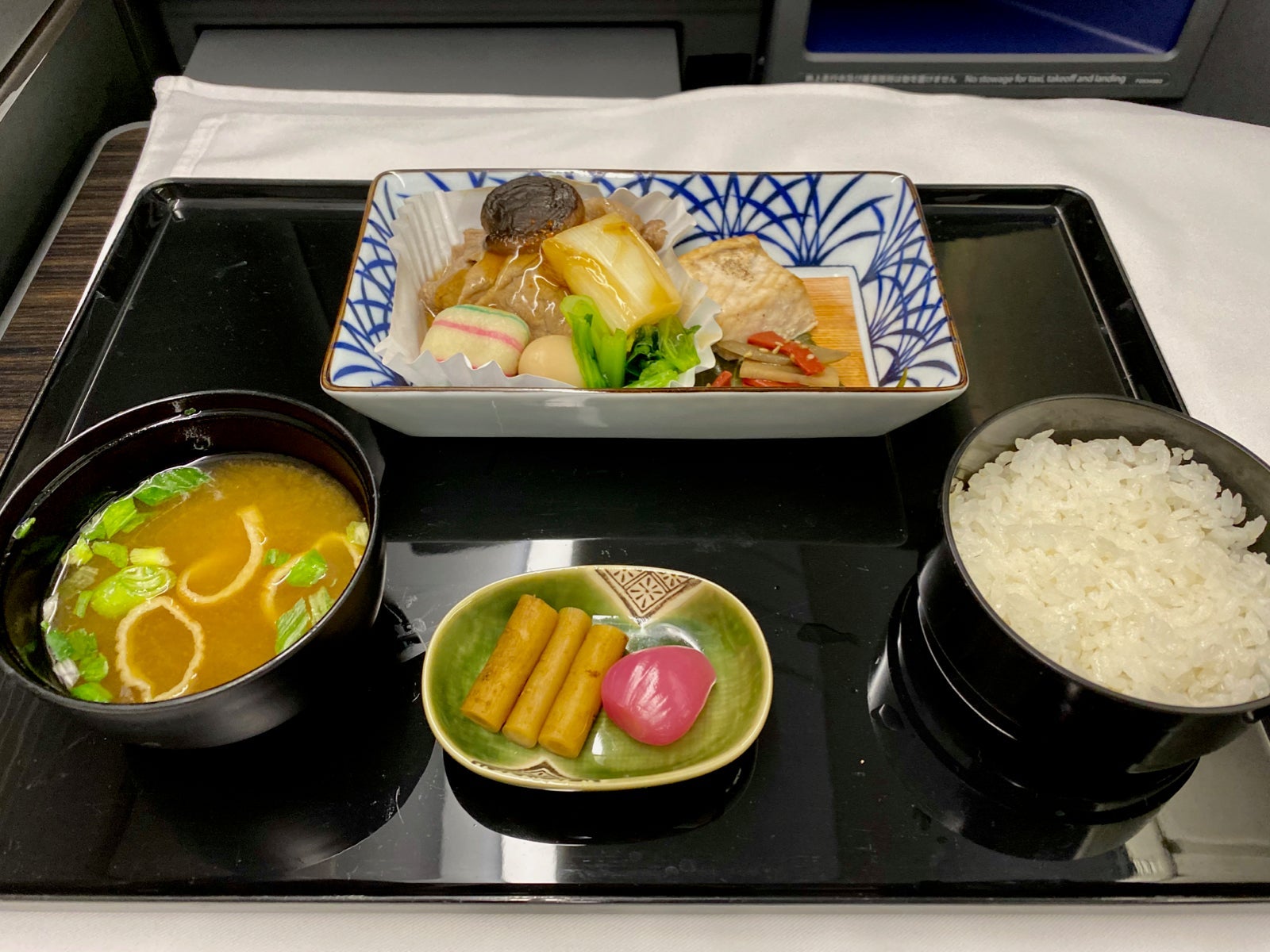 When you fly with either of Japan's largest carriers -- Japan Airlines and All Nippon Airways (ANA) -- you can expect to be treated to some of the best food in the sky, and a Japanese menu that represents the best of the nation's rich culinary tradition. ANA recently introduced an all-new business-class product that is probably the new world standard, and the food is there to match the impressive seat. Think things like algae with tofu paste, salmon roe, crab sushi, salt-boiled prawn, scallops and more.