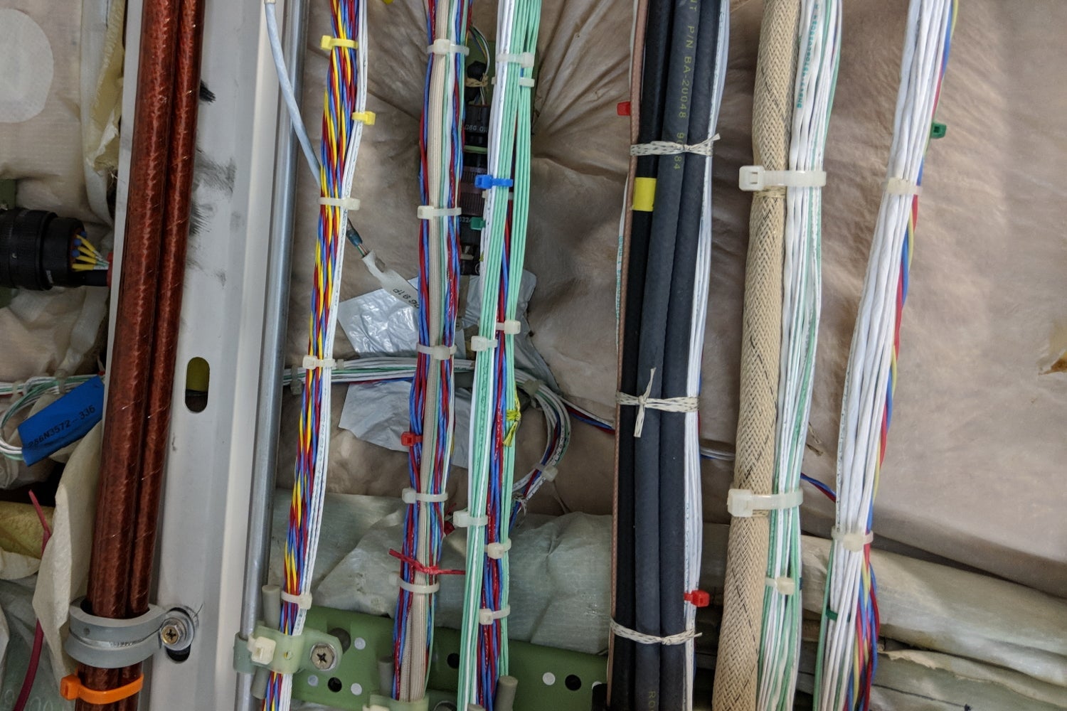 Wires and cables are re-ran by hand, with workers carefully removing a clip, inserting the wire or cable and then replacing the clip — repeatedly from one end of the plane to the other for each wire or cable. Not only is this painstaking to run, but it must be frustrating to repair if a short develops.