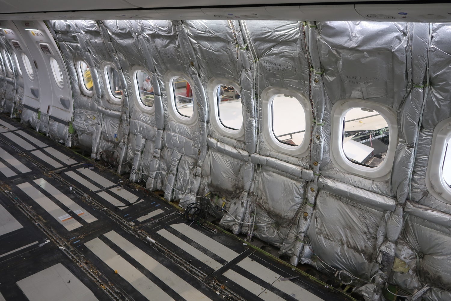 In multiple planes undergoing checks, the carpet and floorboards had been removed and we could see from the passenger cabin into the cargo hold. This view revealed that the space between these areas is much smaller than I'd expected. Indeed, not much more than carpet and floorboard separate the passenger cabin from the cargo compartment.