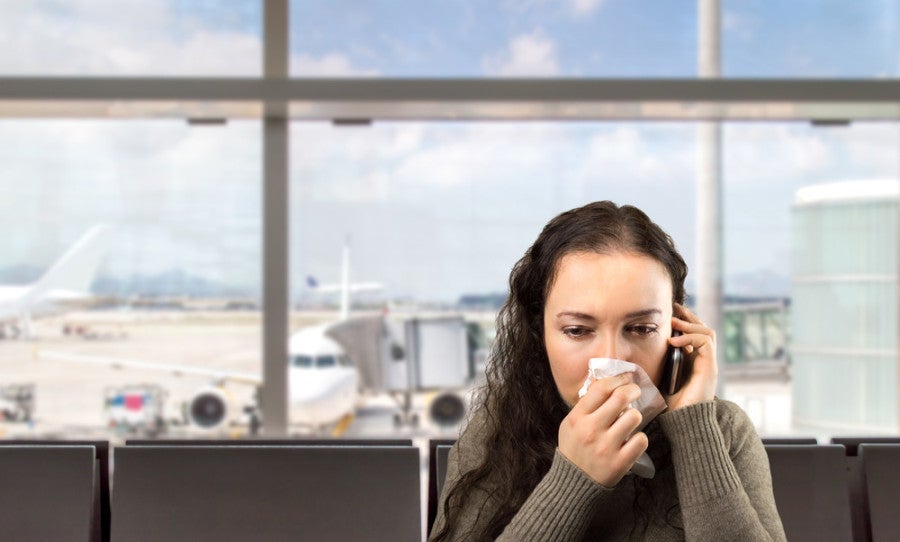 Who wants to risk getting sick by voluntarily sitting next to someone who's visibly ill? No one. Bring out the props and put your acting skills to the test. Perhaps make a stop at a convenience store within the terminal to pick up some cough drops and a box of tissues. Maybe place the box on the middle seat as an extra deterrent from anyone who was debating taking their chances of sitting next to a sniffling, sneezing and coughing neighbor.