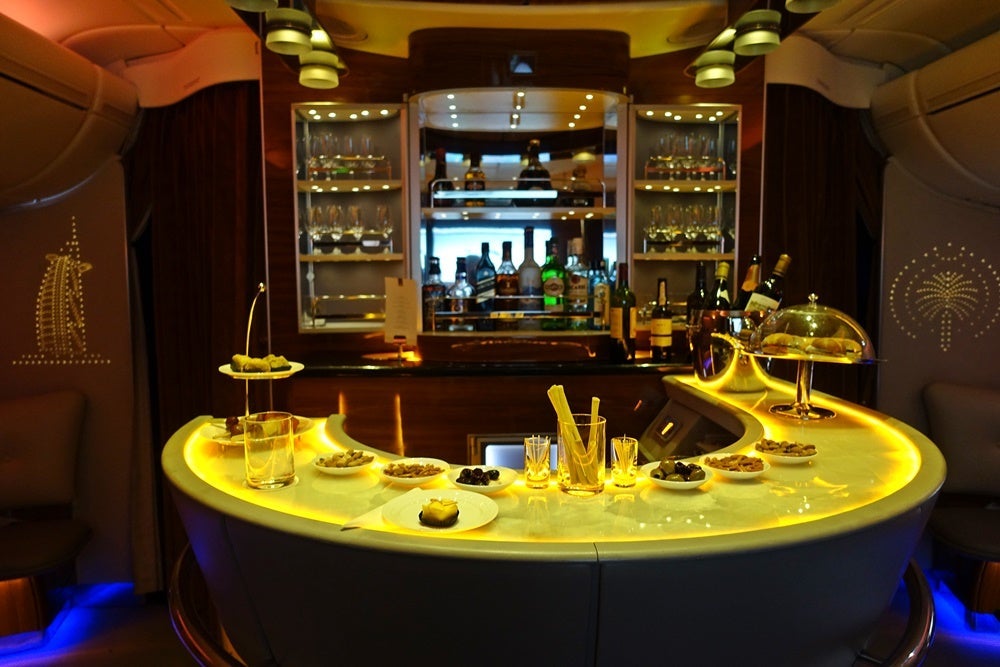 In case you missed Jennifer Aniston's commercials for Emirates economy and Emirates first class you should check them out for a good laugh. As for me, I'll wake up in a few days in an economy nightmare once again, but at least I was able to enjoy some drinks at the bar and ask the bartender to fly this thing around a bit, like Jen did.