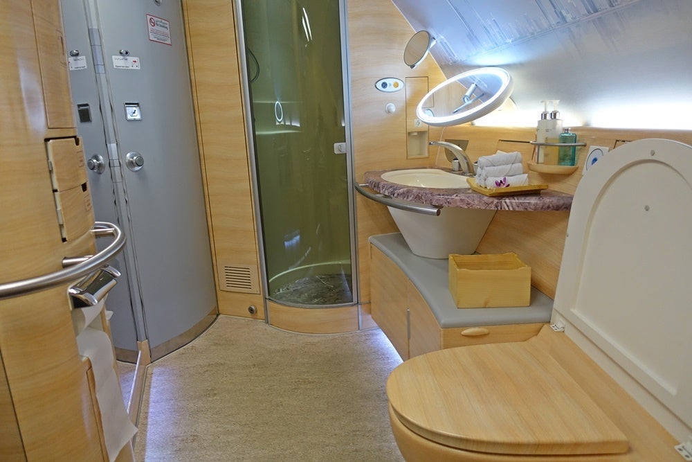 Having two enormous bathrooms in the first class cabin was already a luxury in itself, but being able to shower and freshen up on a long flight made it even better. The bathrooms look at least three times the size of a typical bathroom in economy.