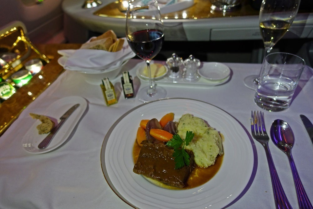 The staff was just incredibly friendly and helpful, checking on me at every turn, bringing me extra chocolates, telling me spots not to be missed in Dubai and Abu Dhabi. I even got some advice from the friendly FA bartender on how to care for your skin as a frequent flyer: tons of water, avoid alcohol (weird, since she was, you know, serving alcohol. Also, no way I'm following that one when Dom Perignon is served, I'll save the dry flights for economy) and lather your skin with Nuxe oil, which is available at French pharmacies and many duty-free shops in Europe.