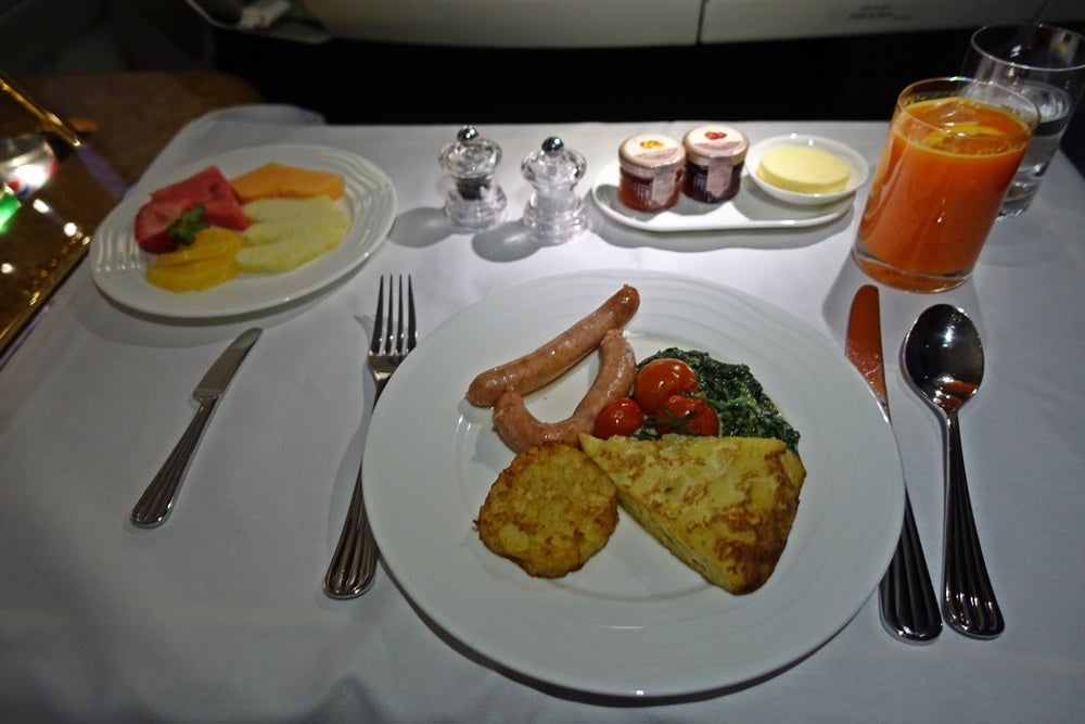 For breakfast, as this was an overnight flight, I had eggs and hash browns, fresh fruit, carrot juice and selected my Nespresso coffee directly from the fancy coffee and tea menu.
